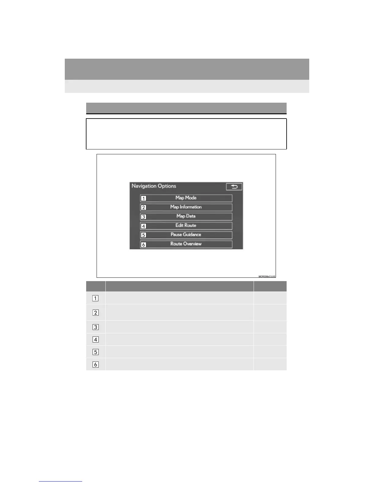 To display the “Navigation Options” screen, press the “MAP/VOICE” button on the