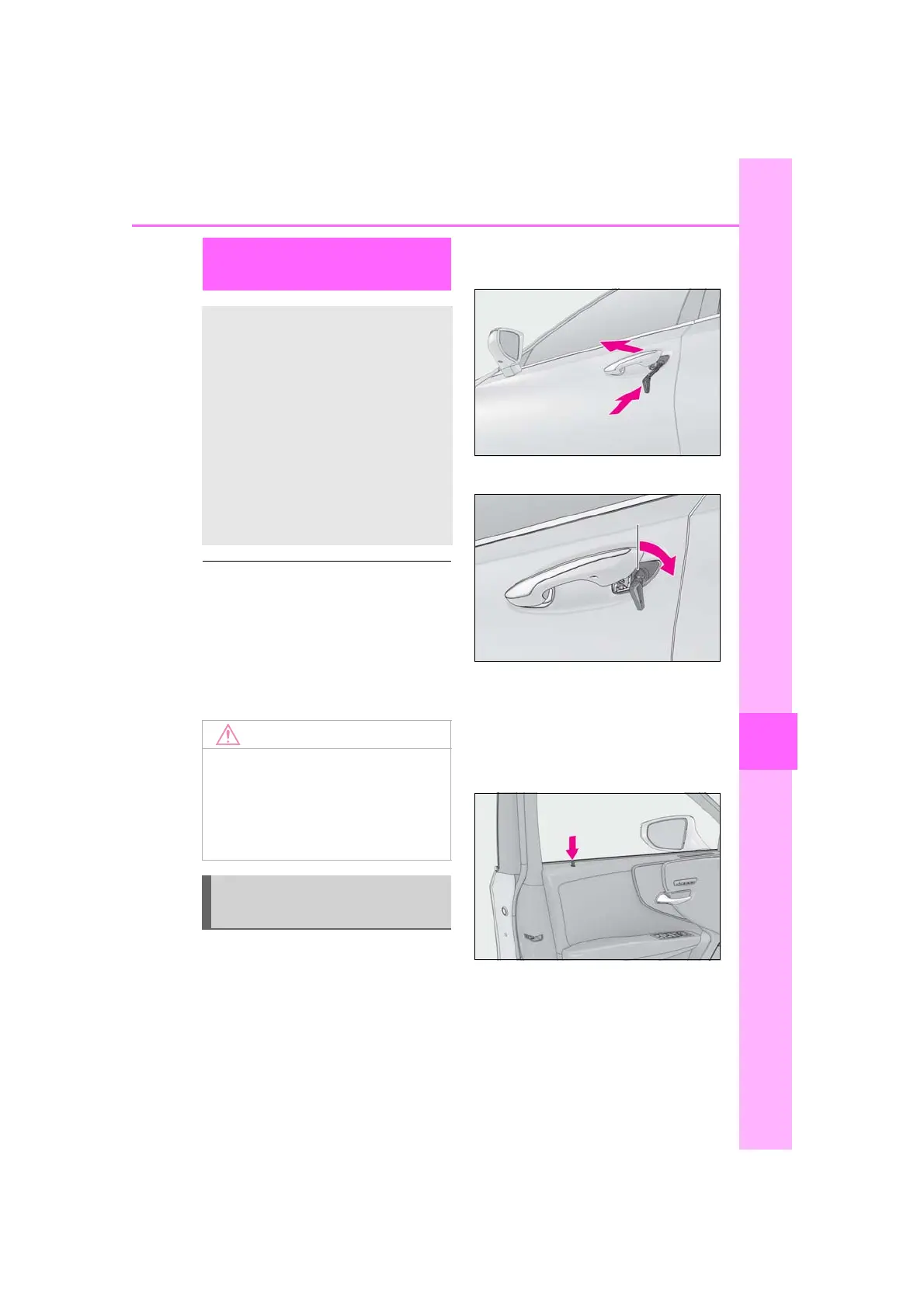 1 Pull the driver’s door handle and