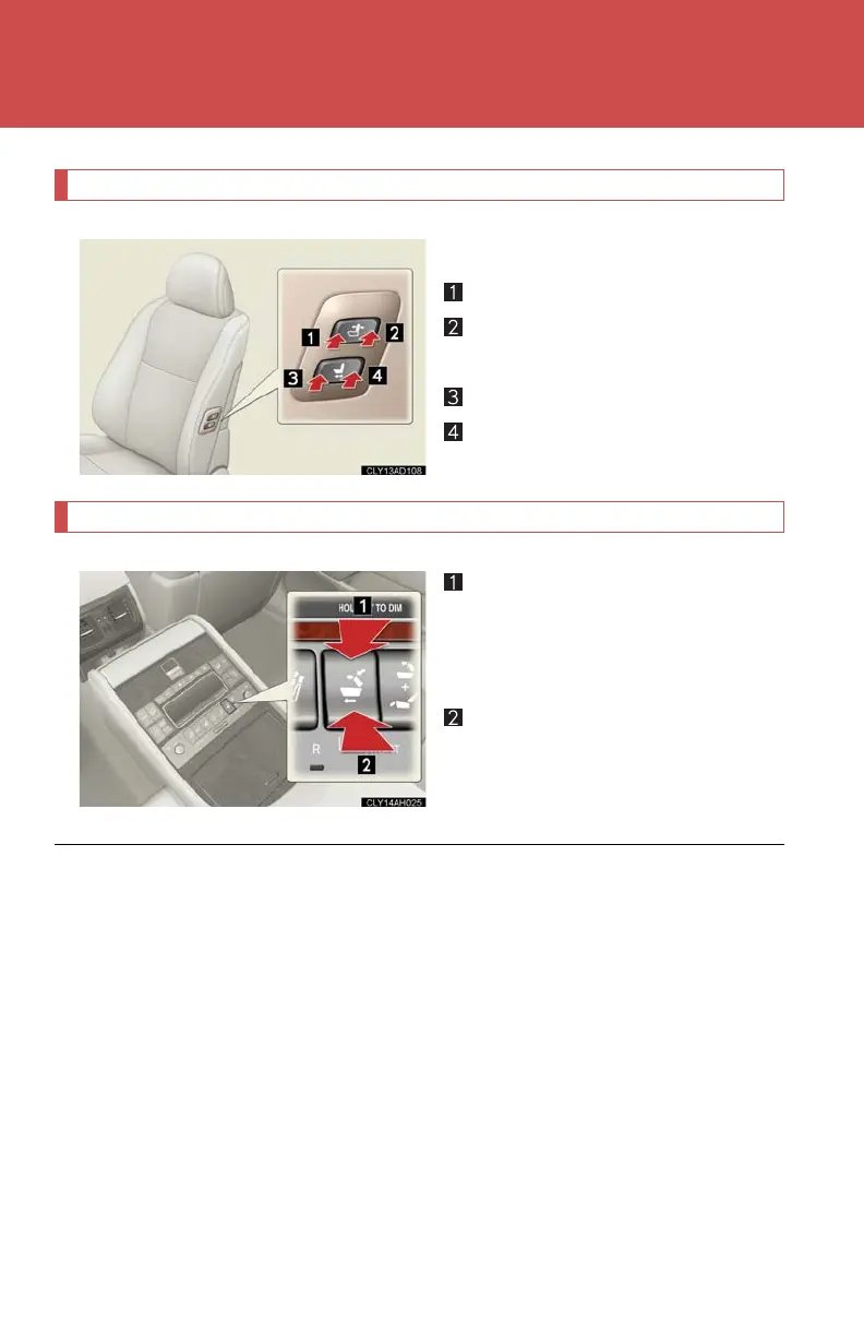 1-3. Adjustable components (seats, mirrors, steering wheel)