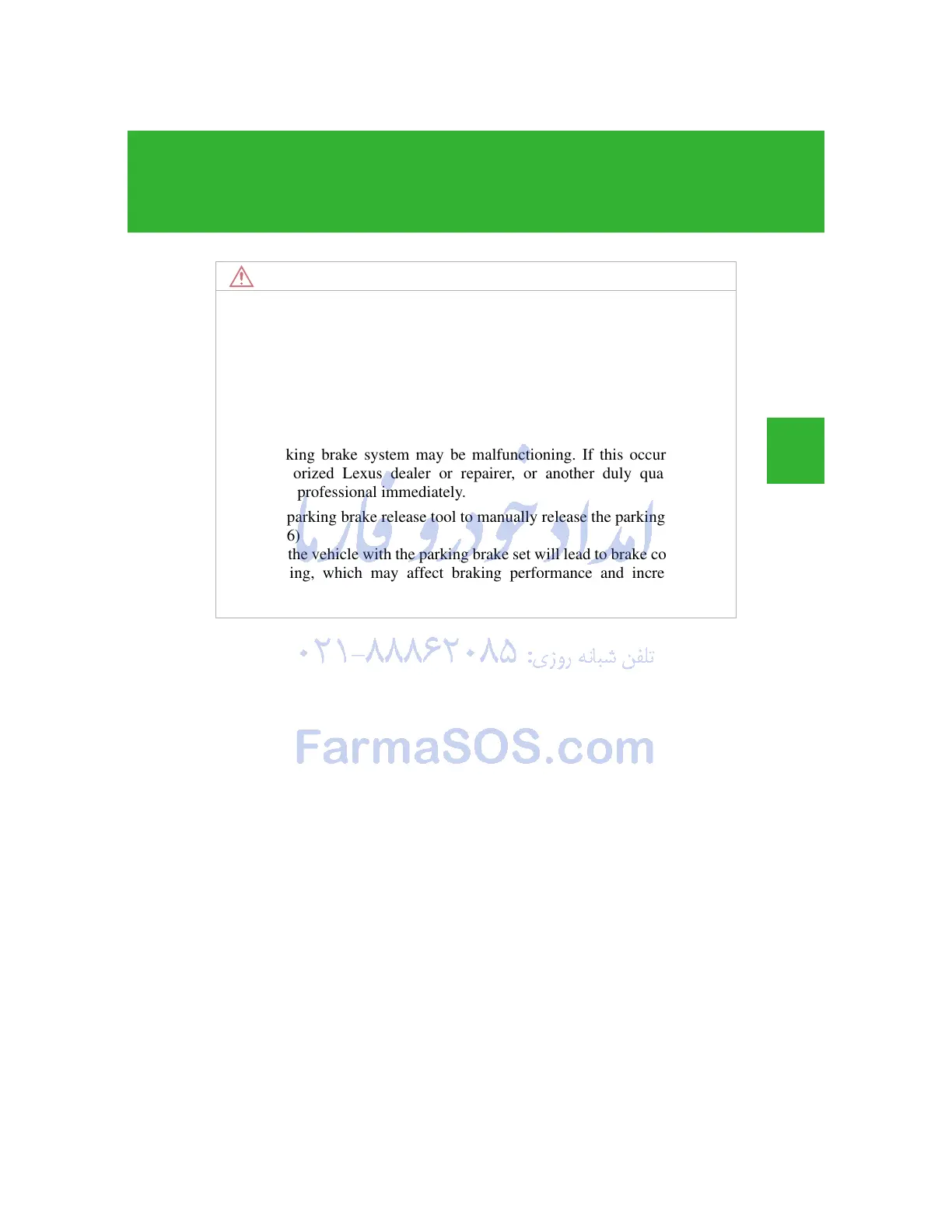 The parking brake system may be malfunctioning. If this occurs, contact