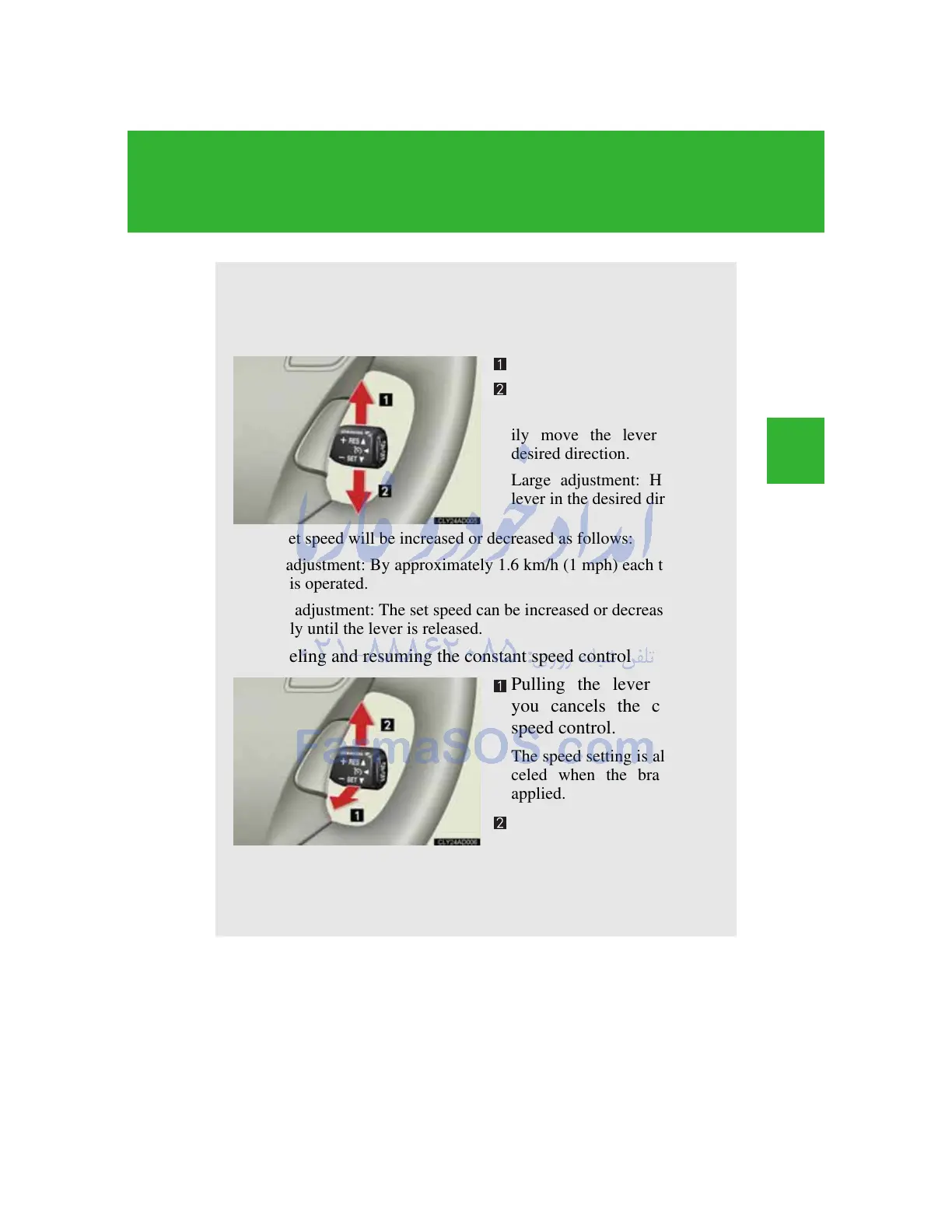 To change the set speed, operate the lever until the desired set