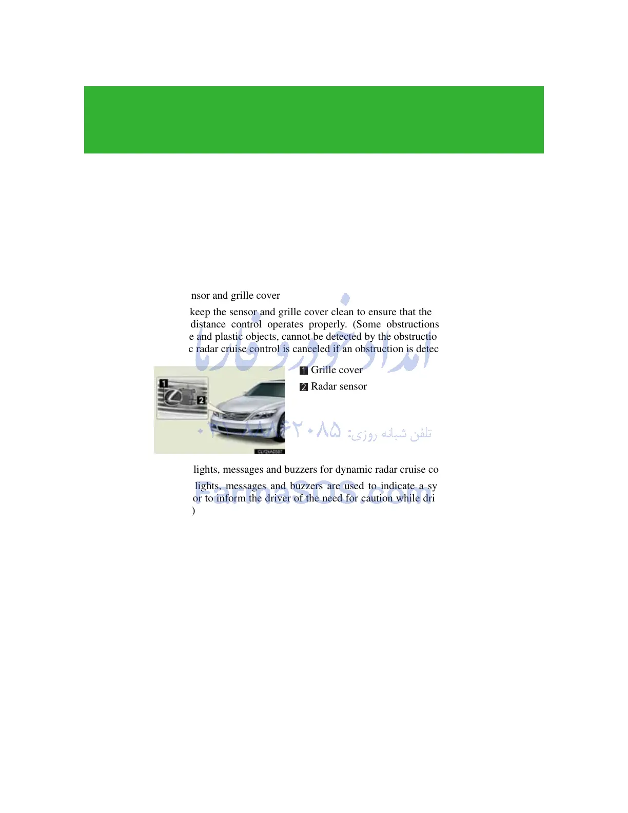 Always keep the sensor and grille cover clean to ensure that the vehicle-to-