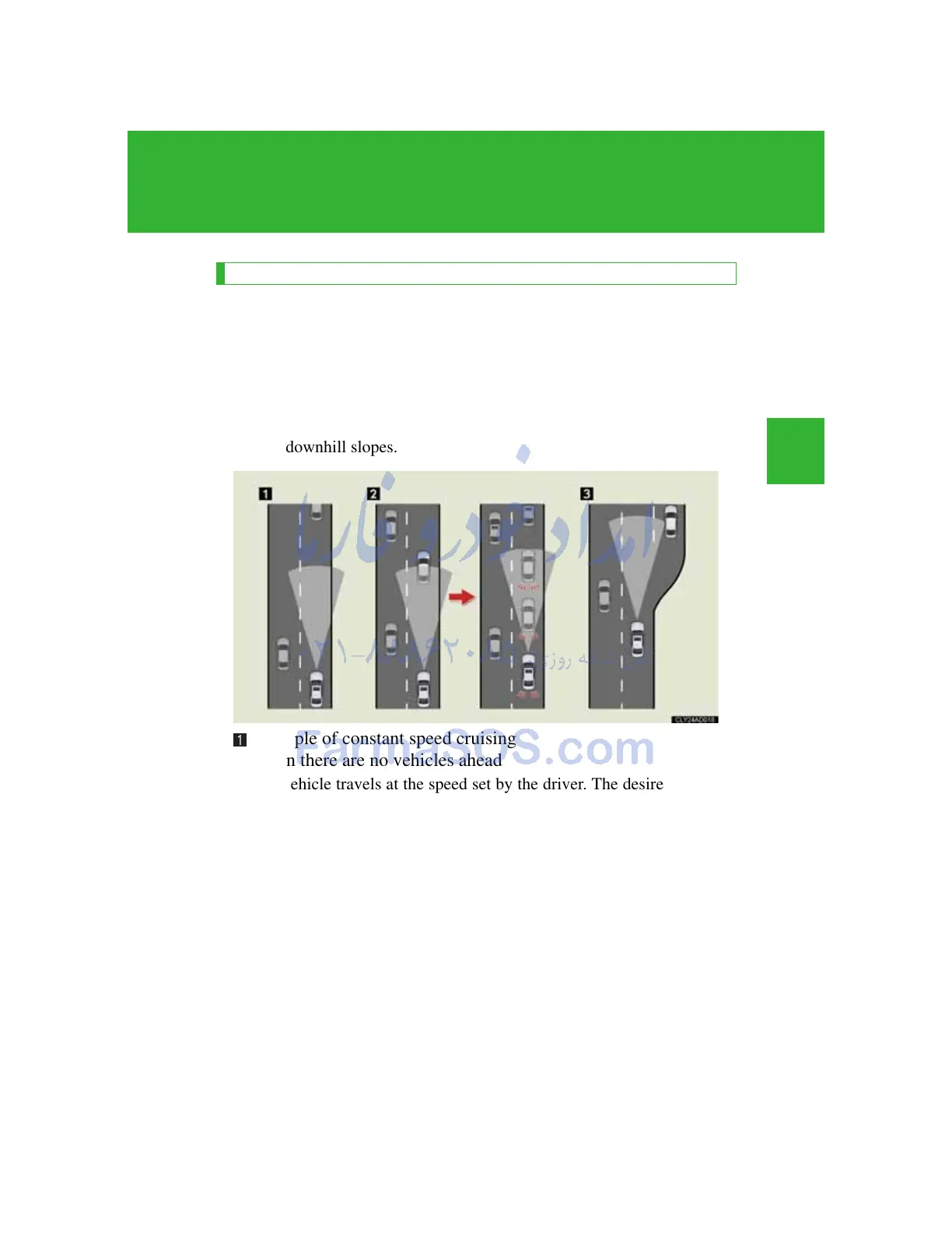 The vehicle travels at the speed set by the driver. The desired vehicle-