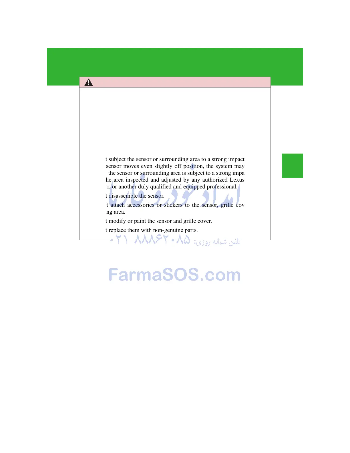 Do not modify or paint the sensor and grille cover.