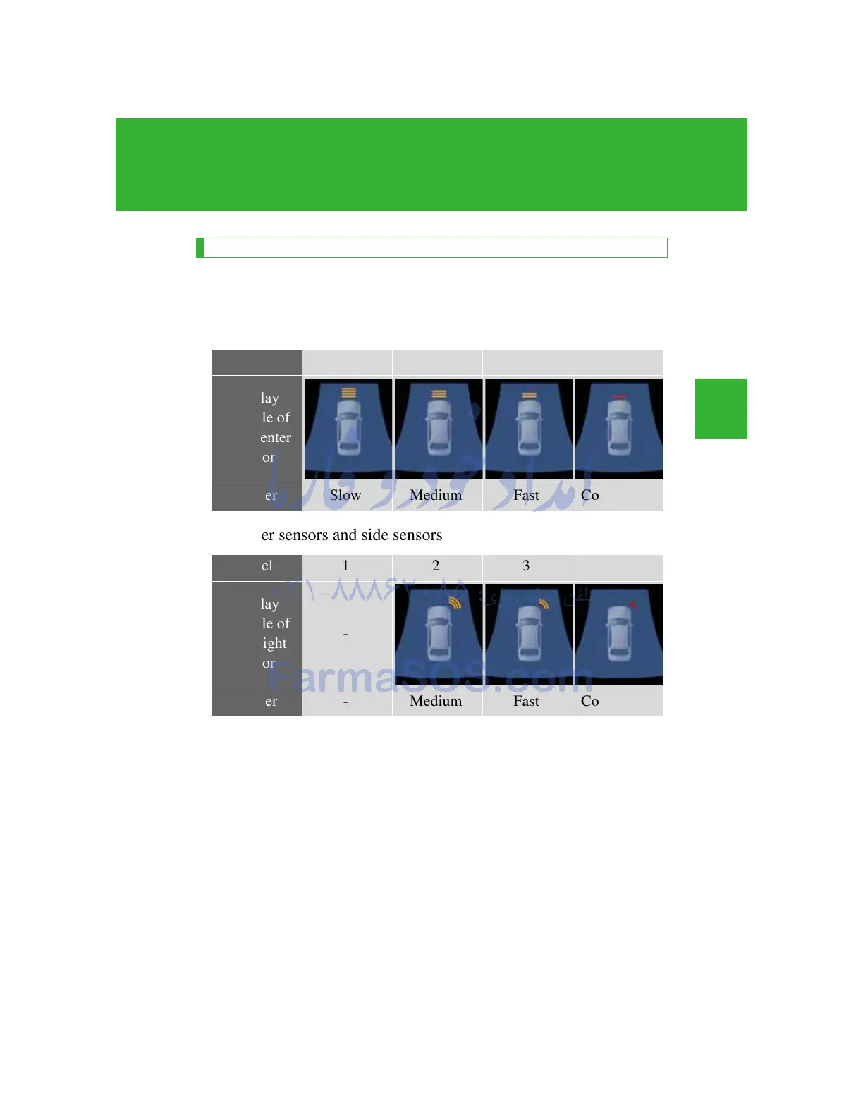 When a sensor detects an obstacle, the direction of and the approx-
