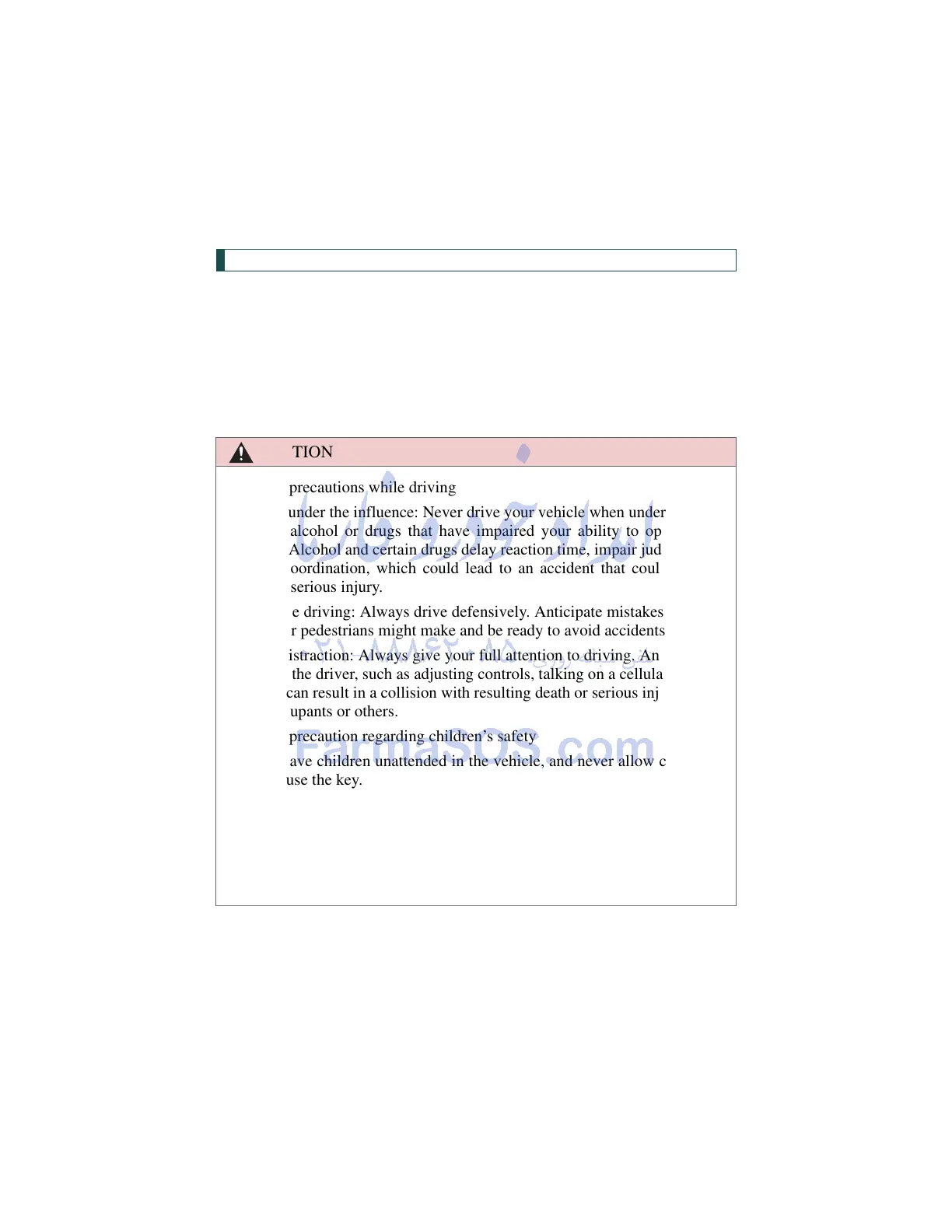 General precautions while driving