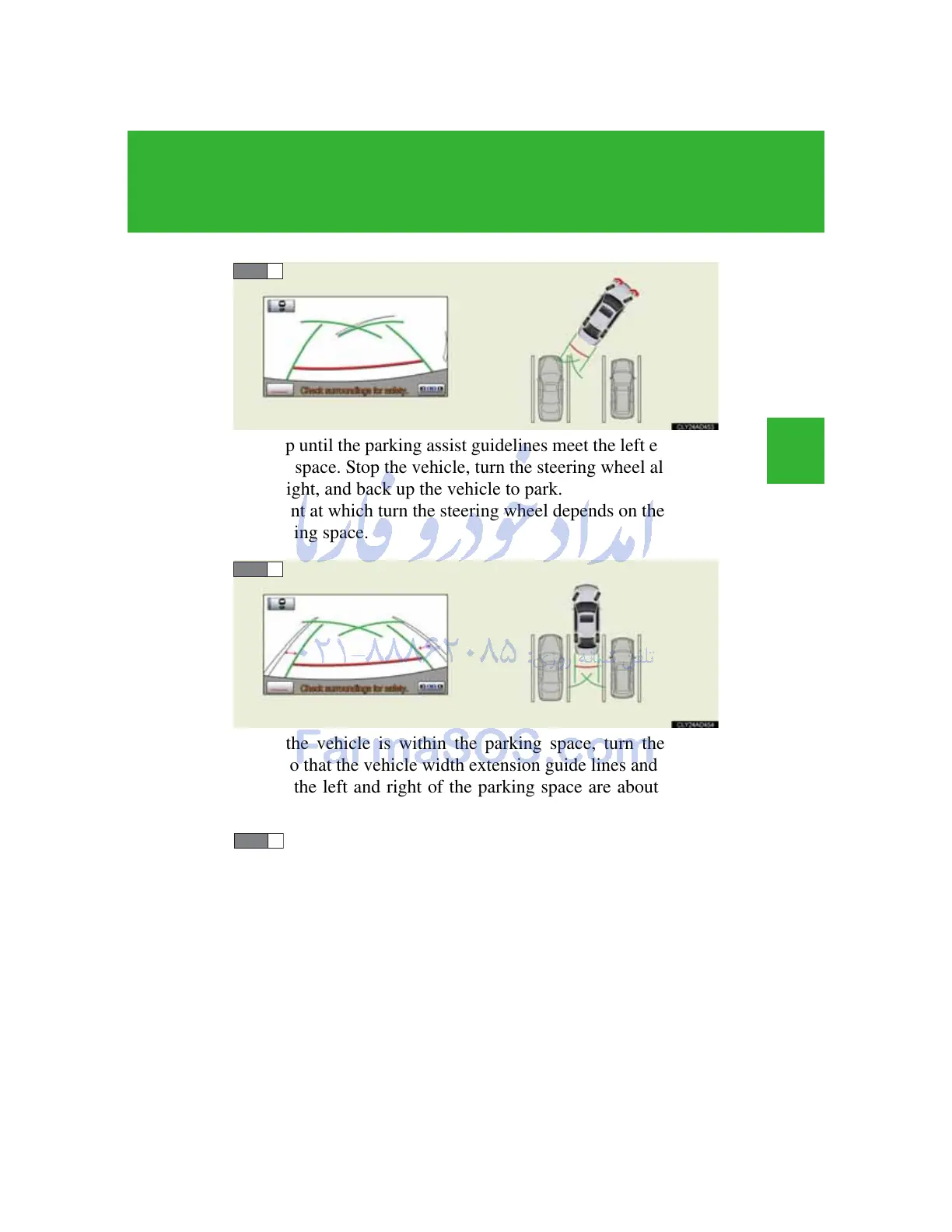 parking space. Stop the vehicle, turn the steering wheel all the way