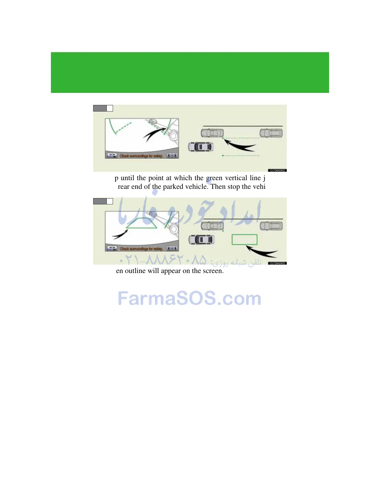 laps the rear end of the parked vehicle. Then stop the vehicle.