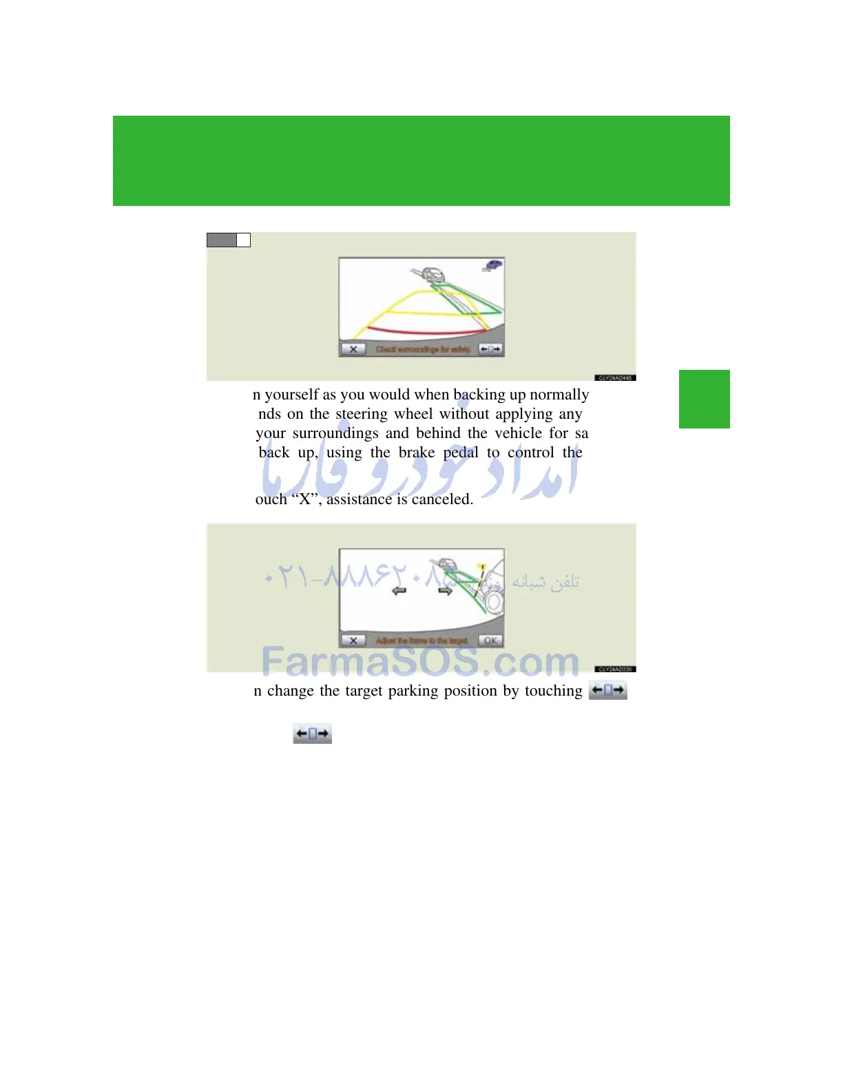 Touch the arrows to move the target parking position, and then