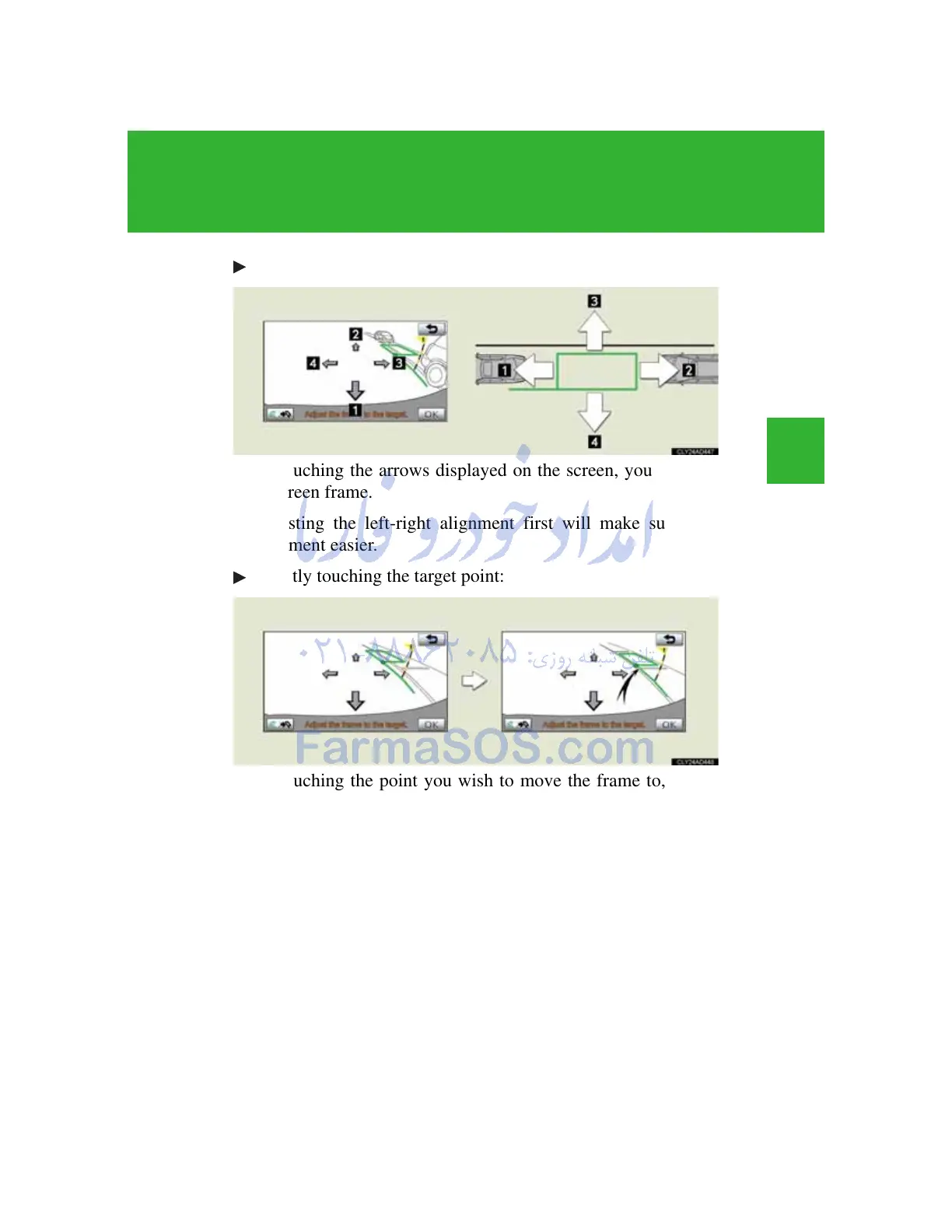 By touching the arrows displayed on the screen, you can move