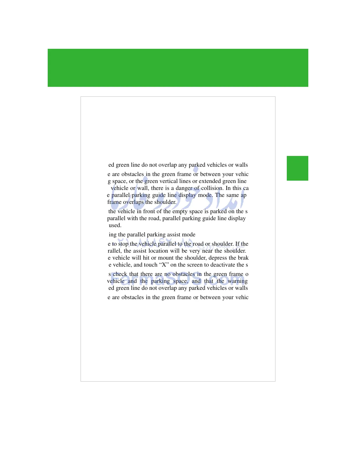 use the parallel parking assist mode. The same applies if the green frame