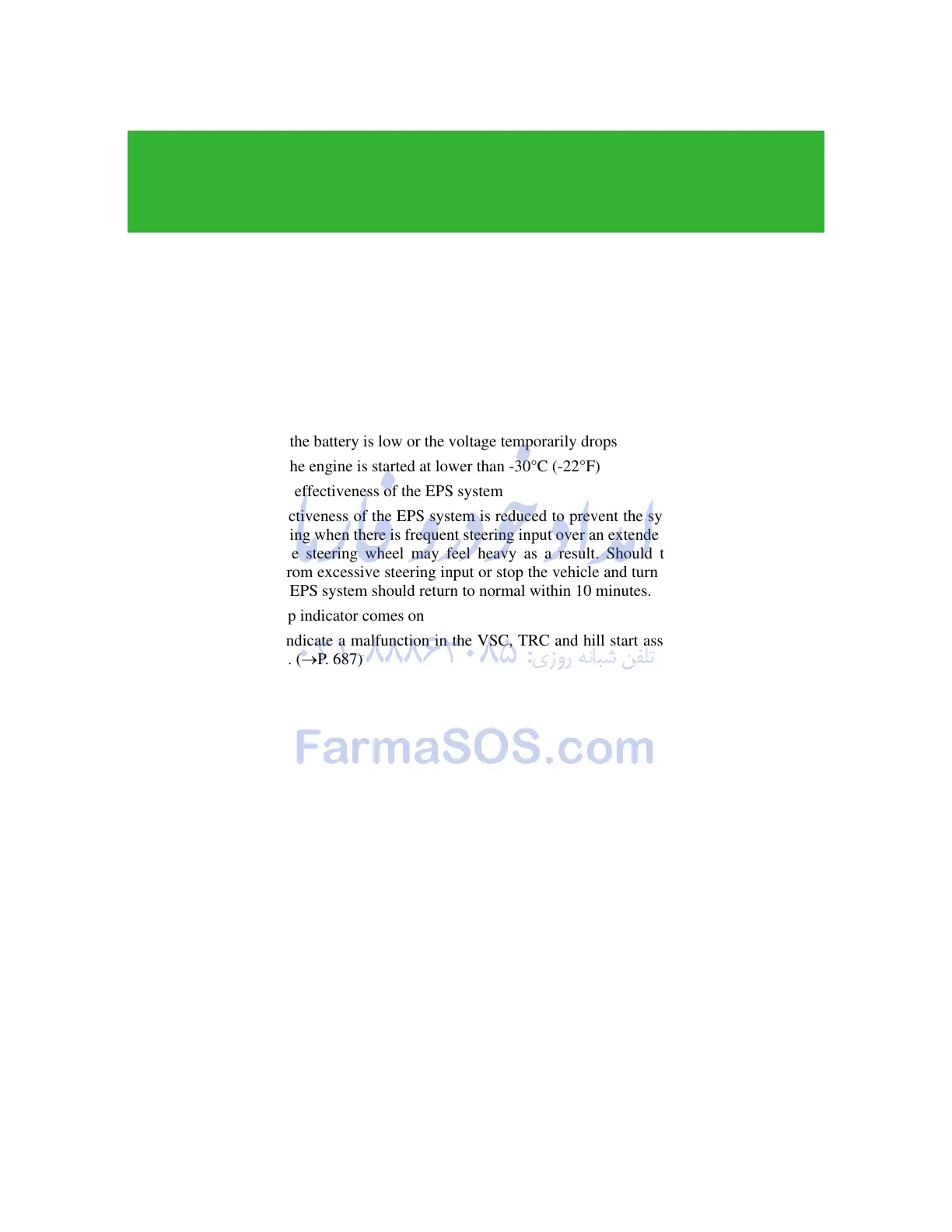 Reduced effectiveness of the EPS system