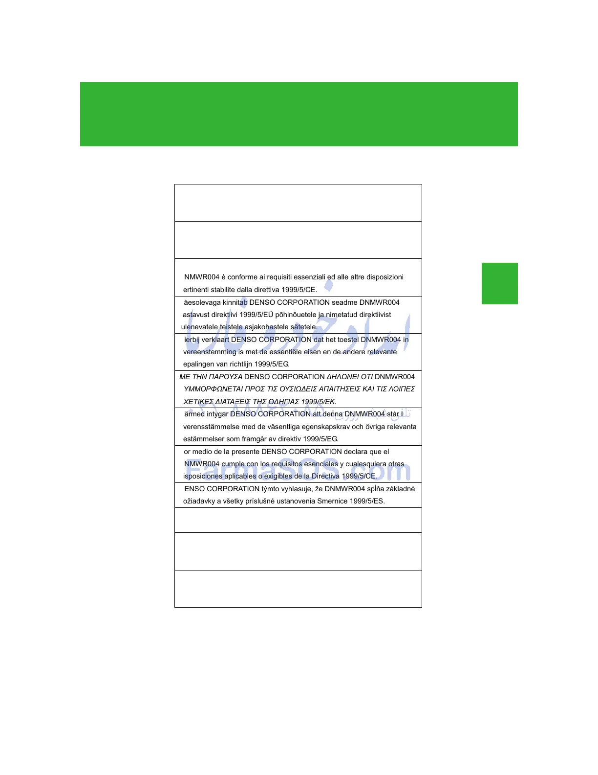 Härmed intygar DENSO CORPORATION att denna DNMWR004 står I