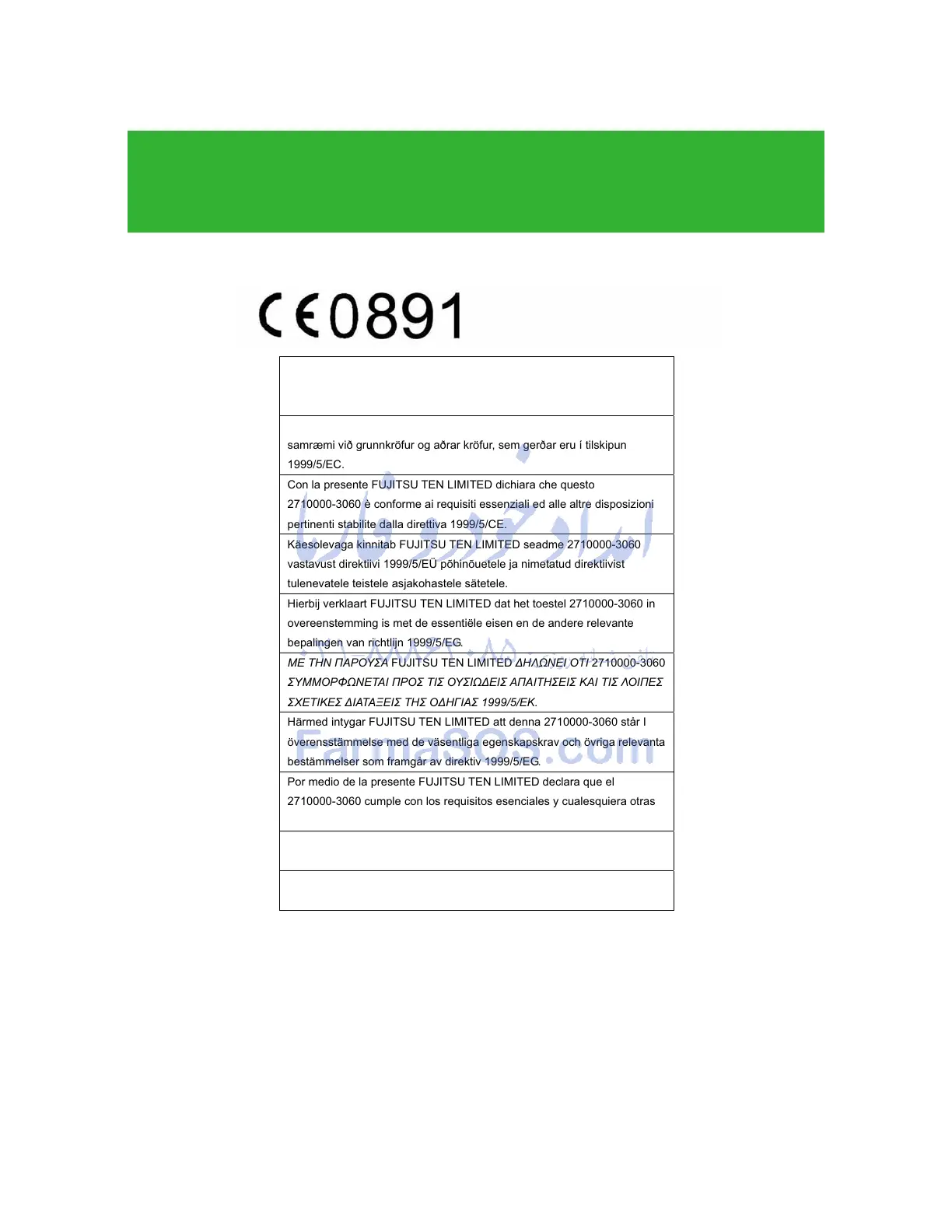Hér með lýsir FUJITSU TEN LIMITED yfir því að 2710000-3060 er í