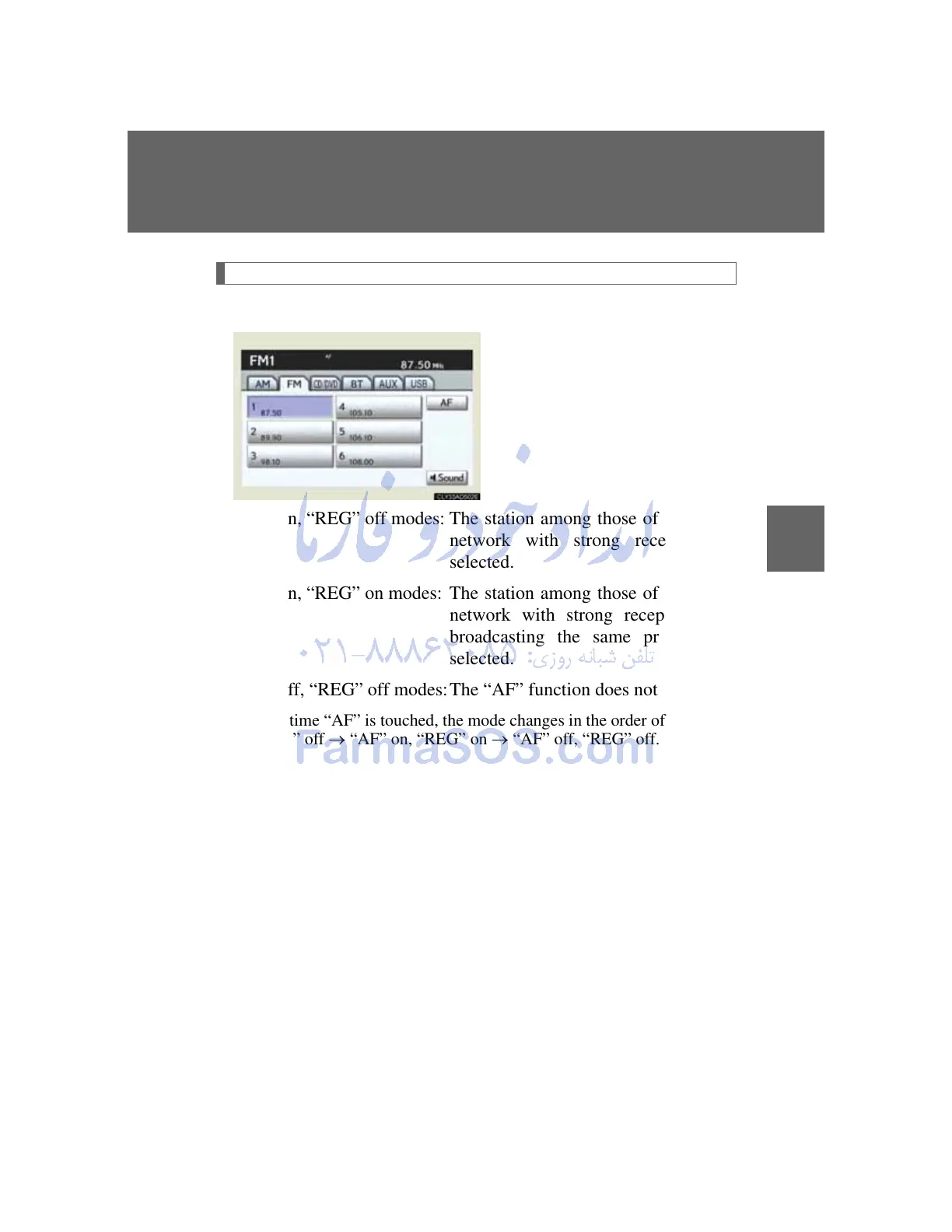 “AF” on, “REG” off modes: The station among those of the same