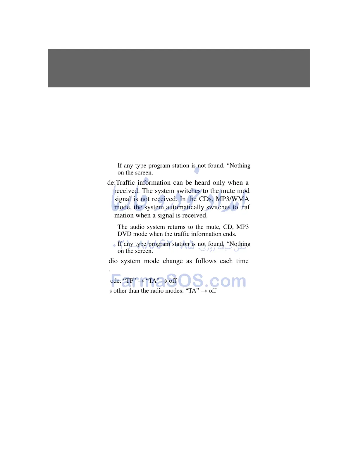 TA mode:Traffic information can be heard only when a signal is