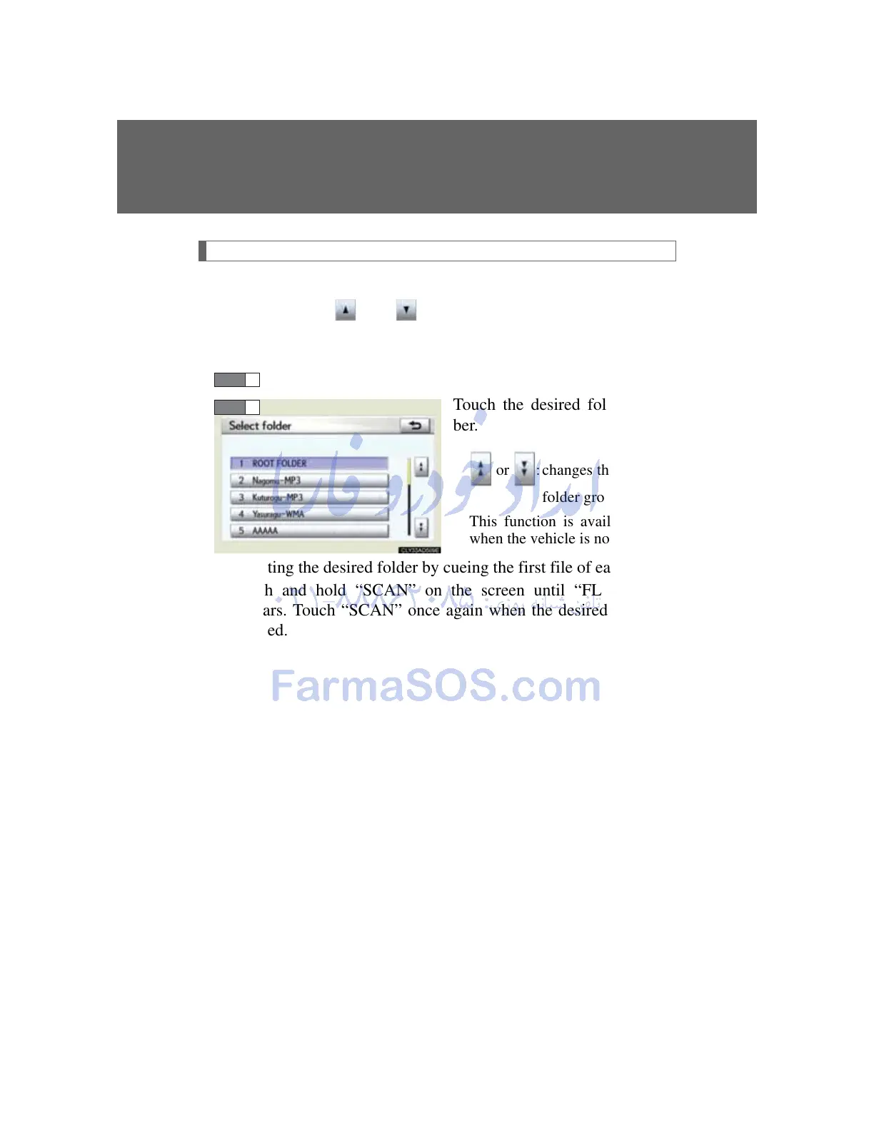 Touch “Folder ” or “ ” on the screen to select the next/pre-