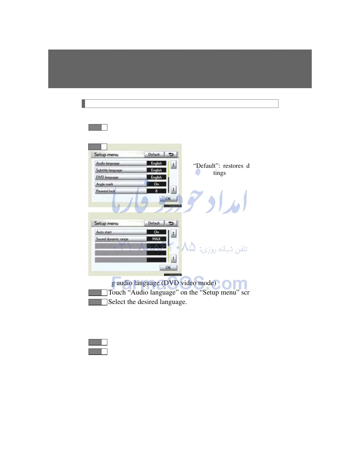 Touch “DVD Video settings” or “DVD Audio settings” on