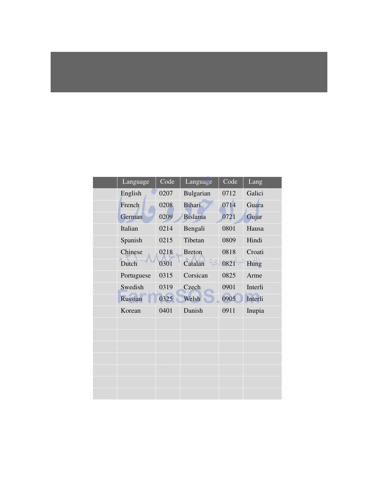 0618 French 0208 Bihari 0714 Guarani