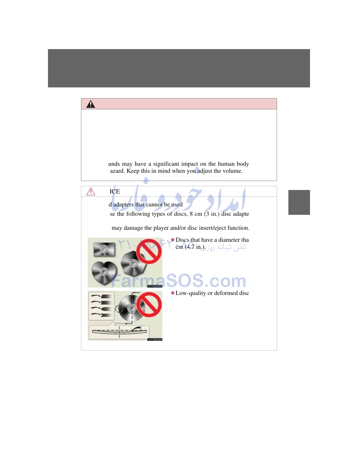 Do not use the following types of discs, 8 cm (3 in.) disc adapters or Dual