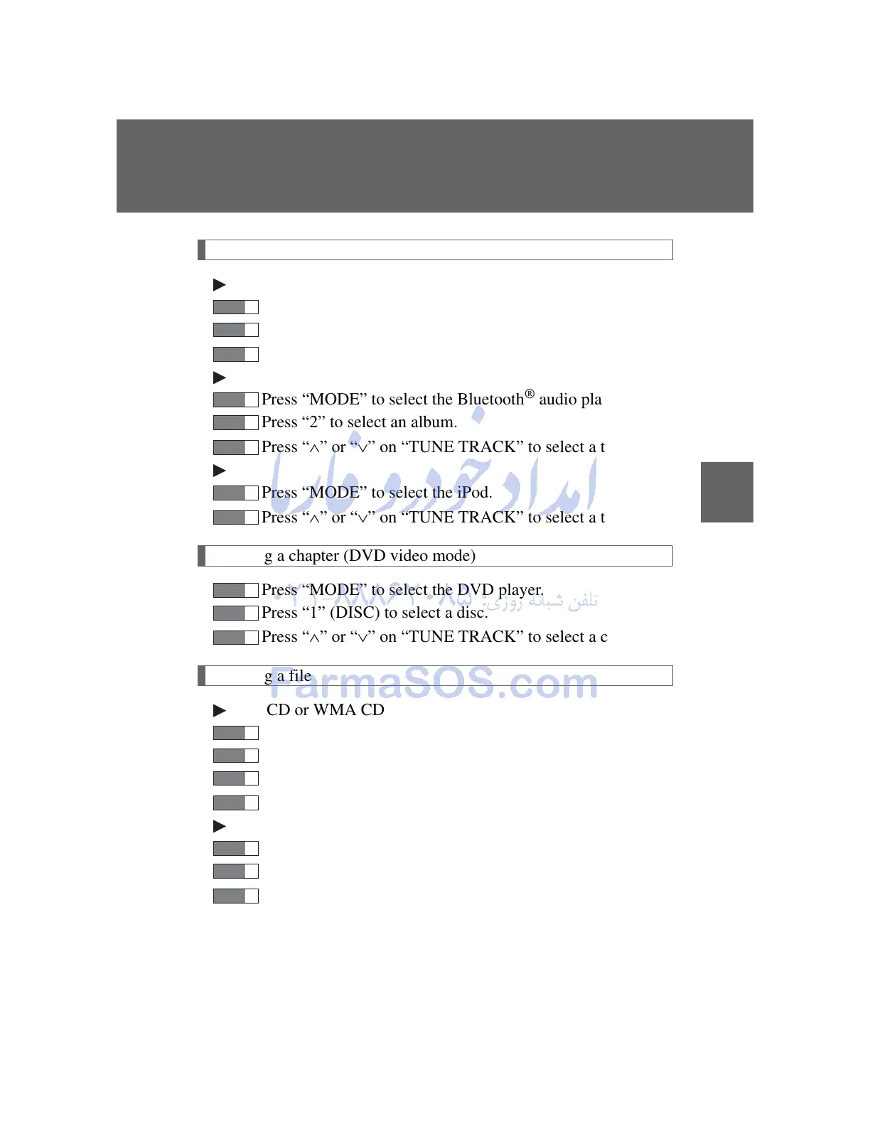 Press “” or “” on “TUNE TRACK” to select a chapter.