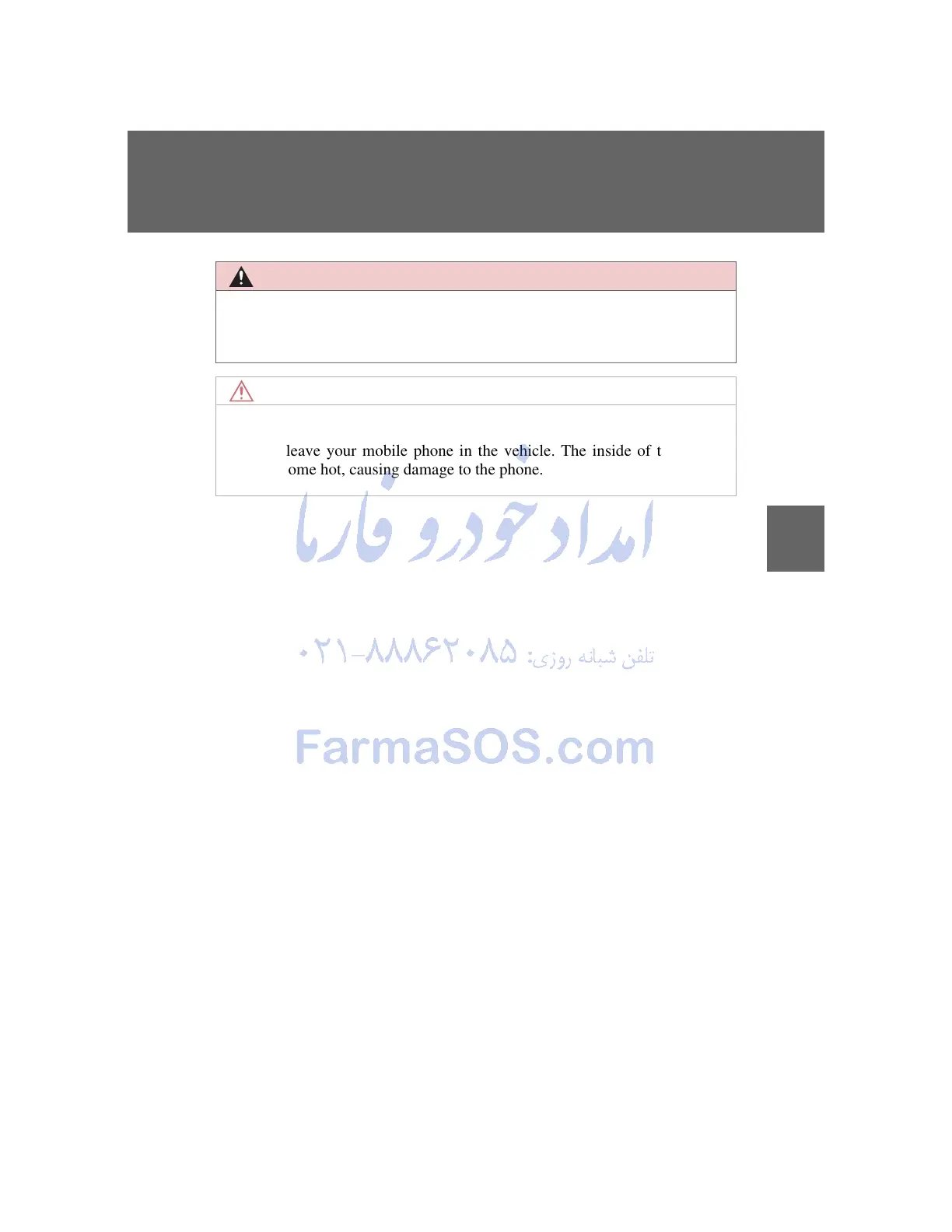 Do not leave your mobile phone in the vehicle. The inside of the vehicle