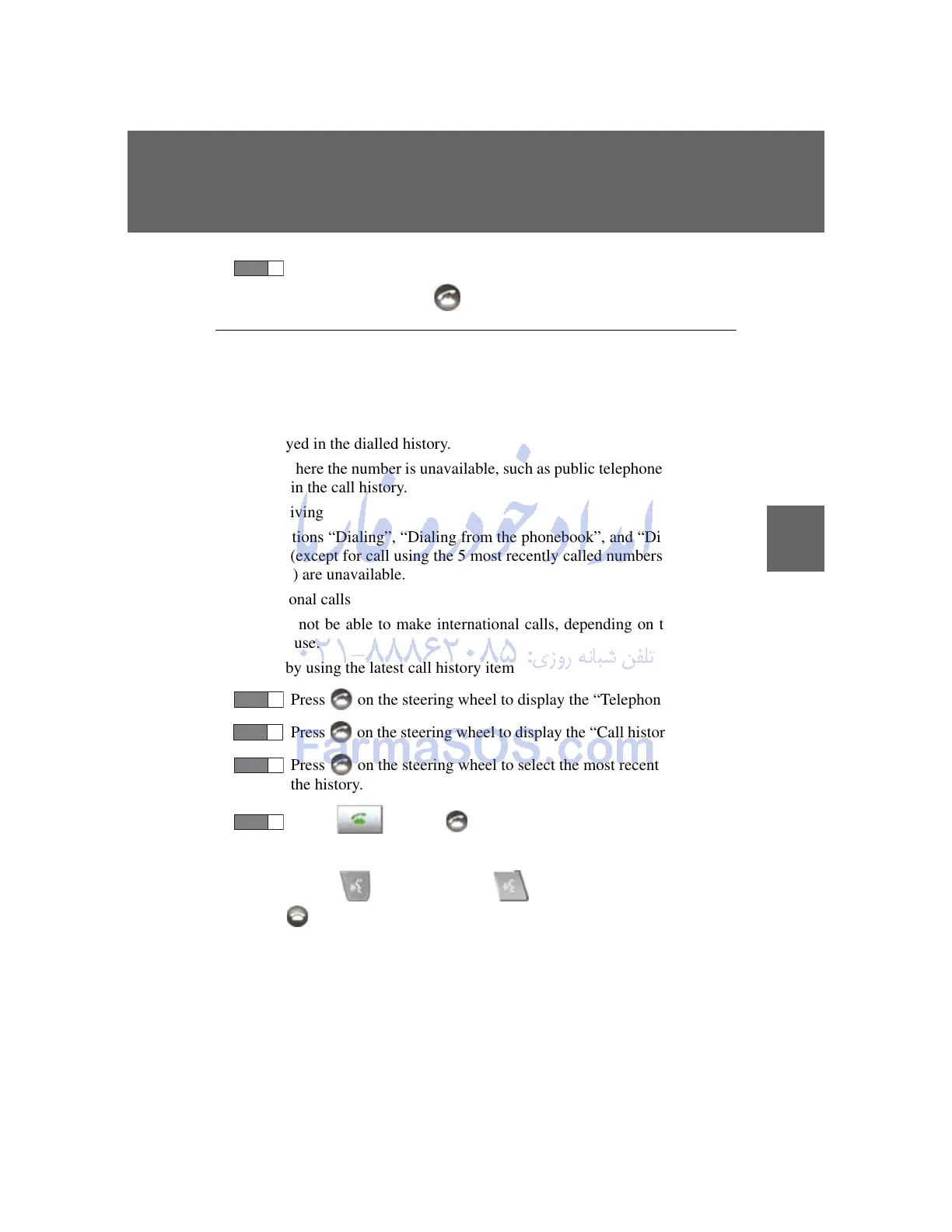 history” (except for call using the 5 most recently called numbers shown by