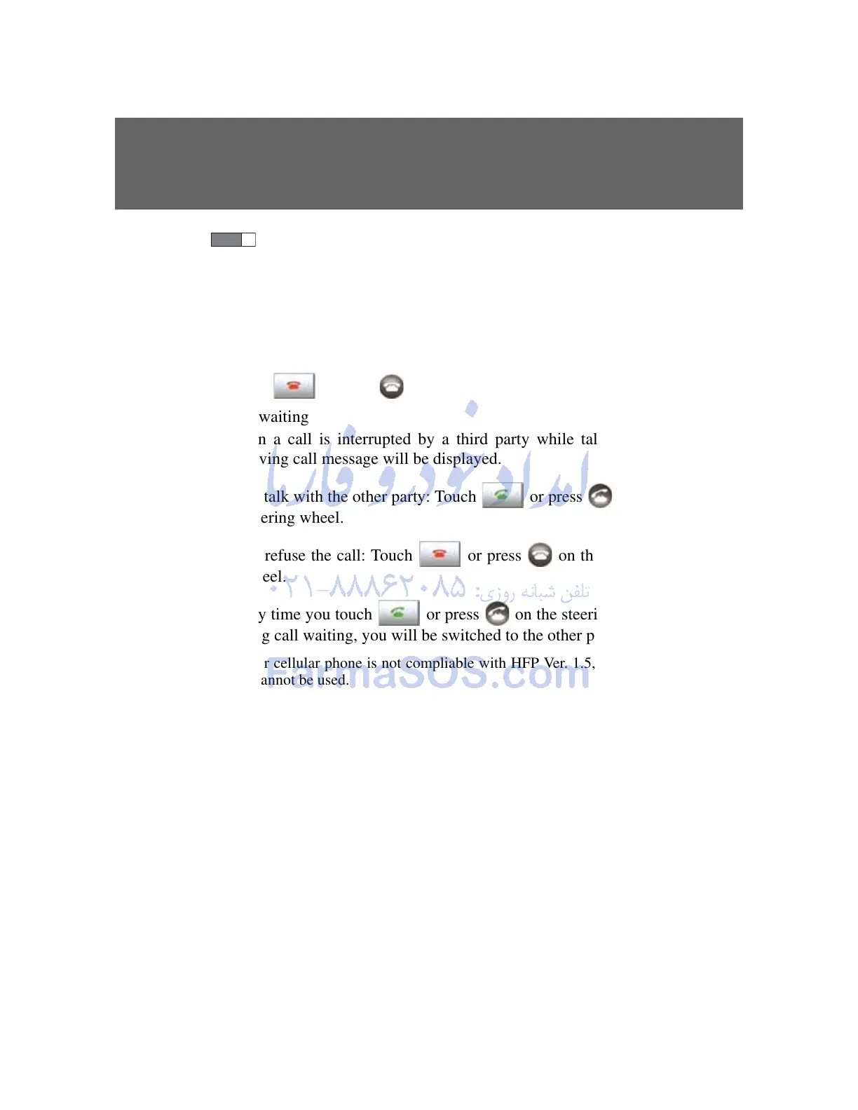 If your cellular phone is not compliable with HFP Ver. 1.5, this func-