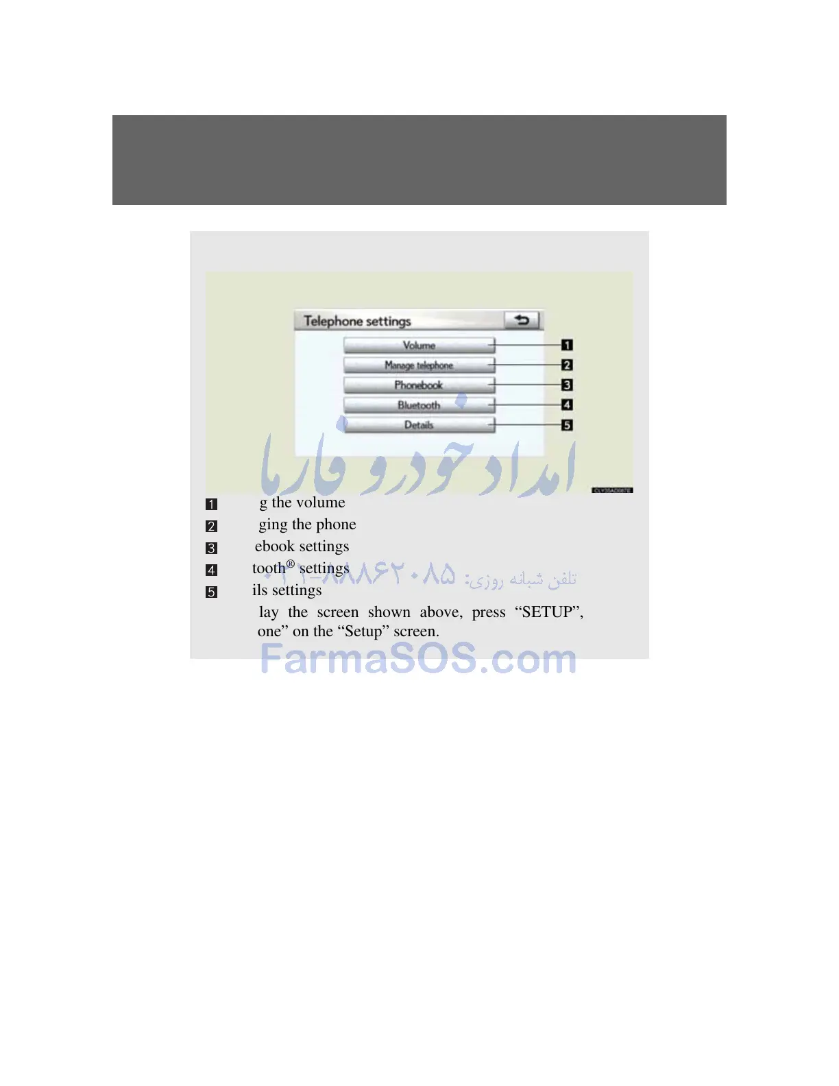 “Telephone” on the “Setup” screen.