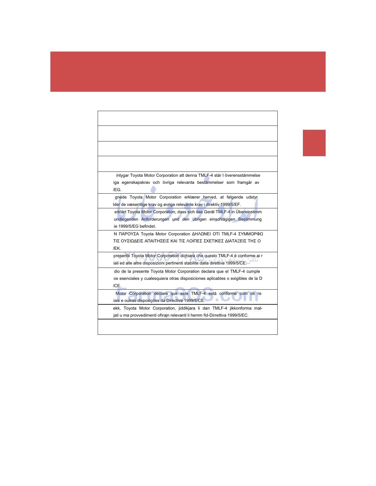 Toyota Motor Corporation vakuuttaa täten että TMLF-4 tyyppinen laite on direktiivin 1999/5/EY