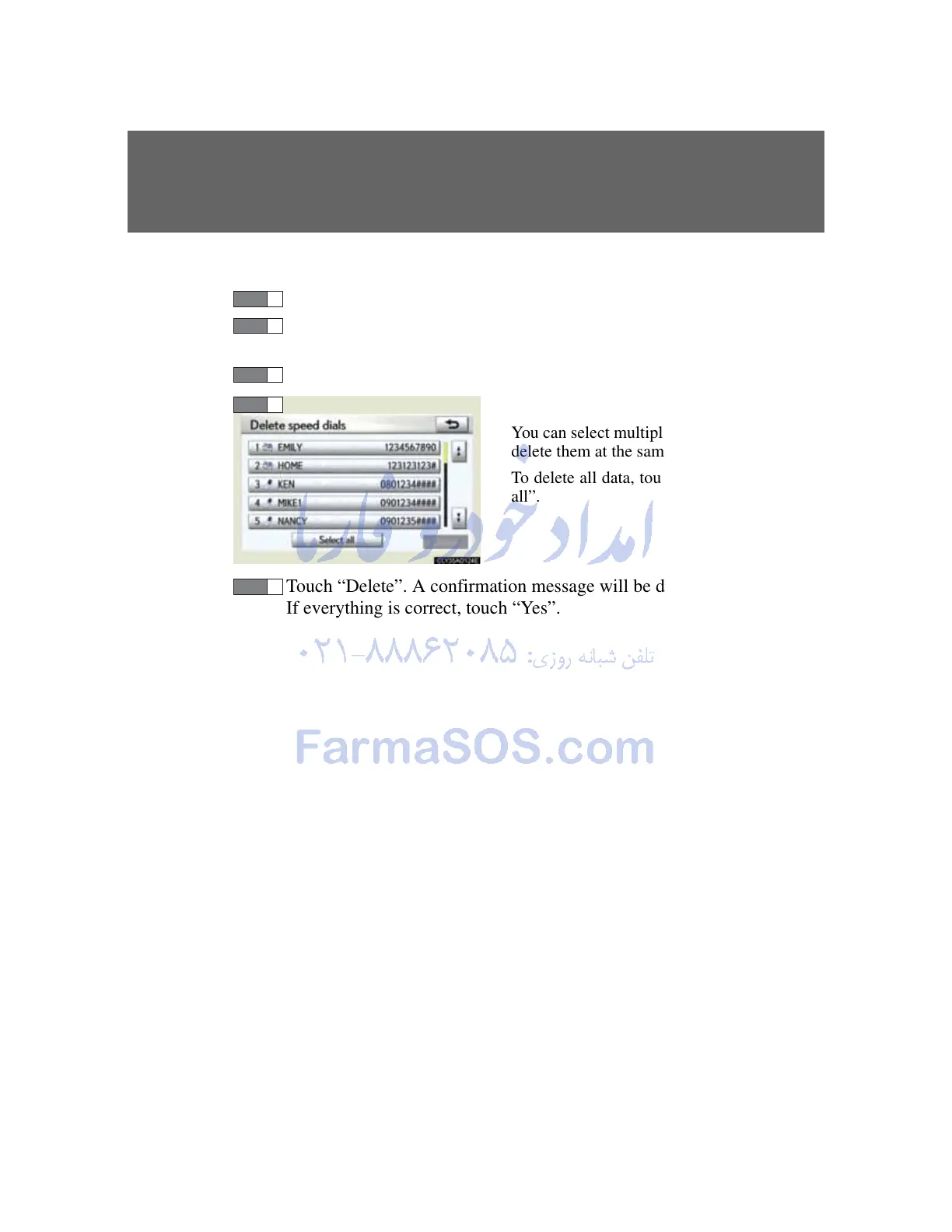 To delete all data, touch “Select