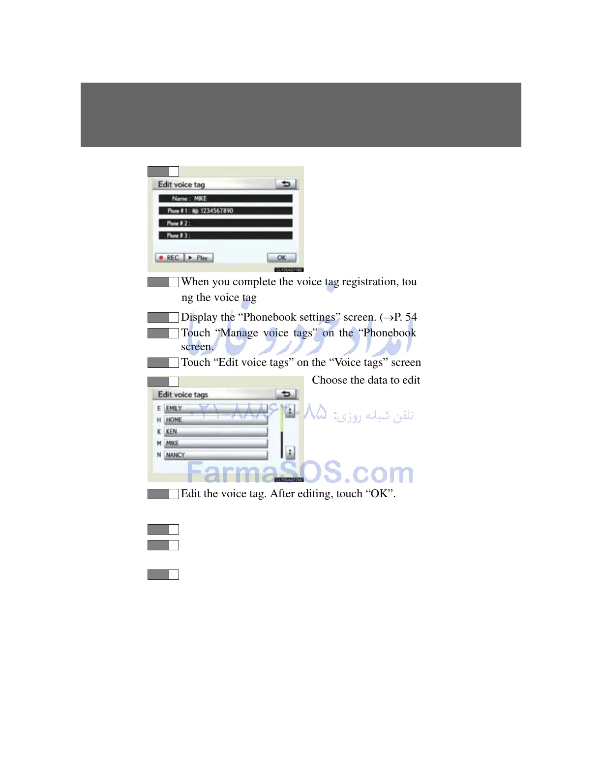 Touch “Manage voice tags” on the “Phonebook settings”
