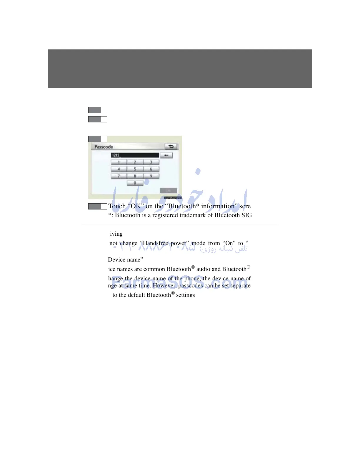 Touch “Edit” of “Passcode” on the “Bluetooth* informa-