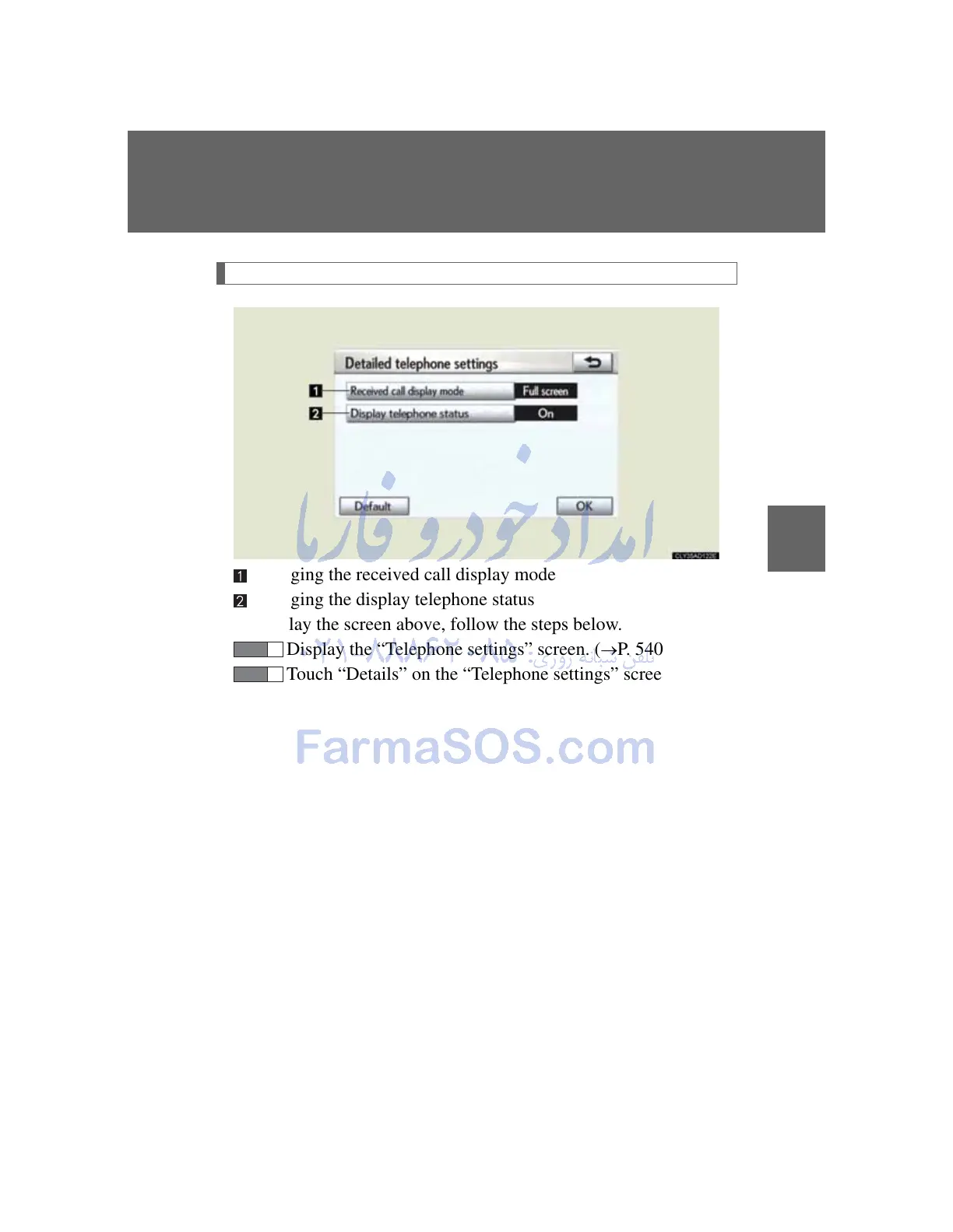 Display the “Telephone settings” screen. (P. 540)