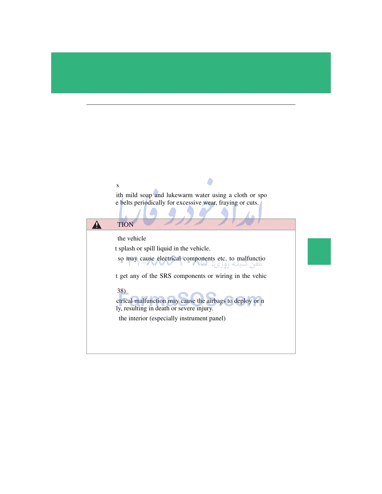 Do not splash or spill liquid in the vehicle.