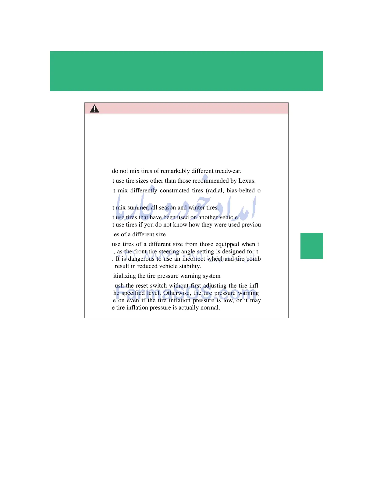 Do not use tire sizes other than those recommended by Lexus.