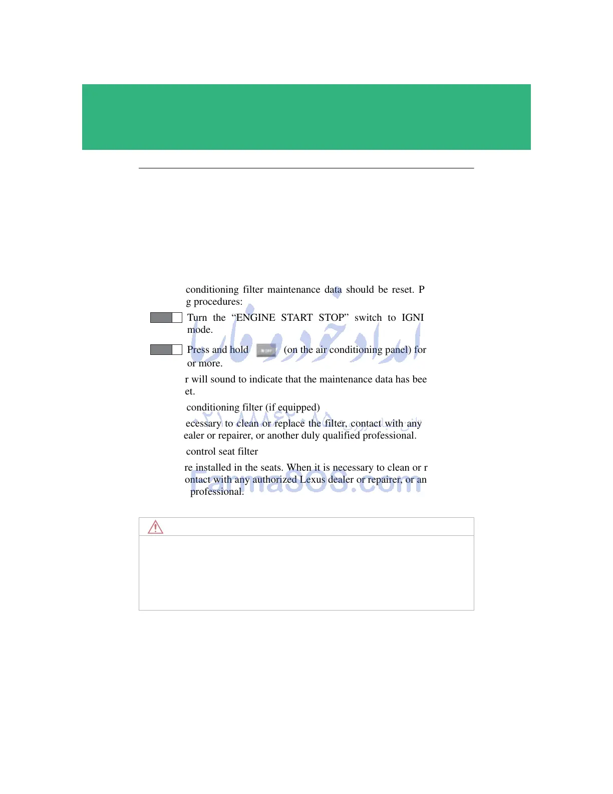 filters, contact with any authorized Lexus dealer or repairer, or another duly