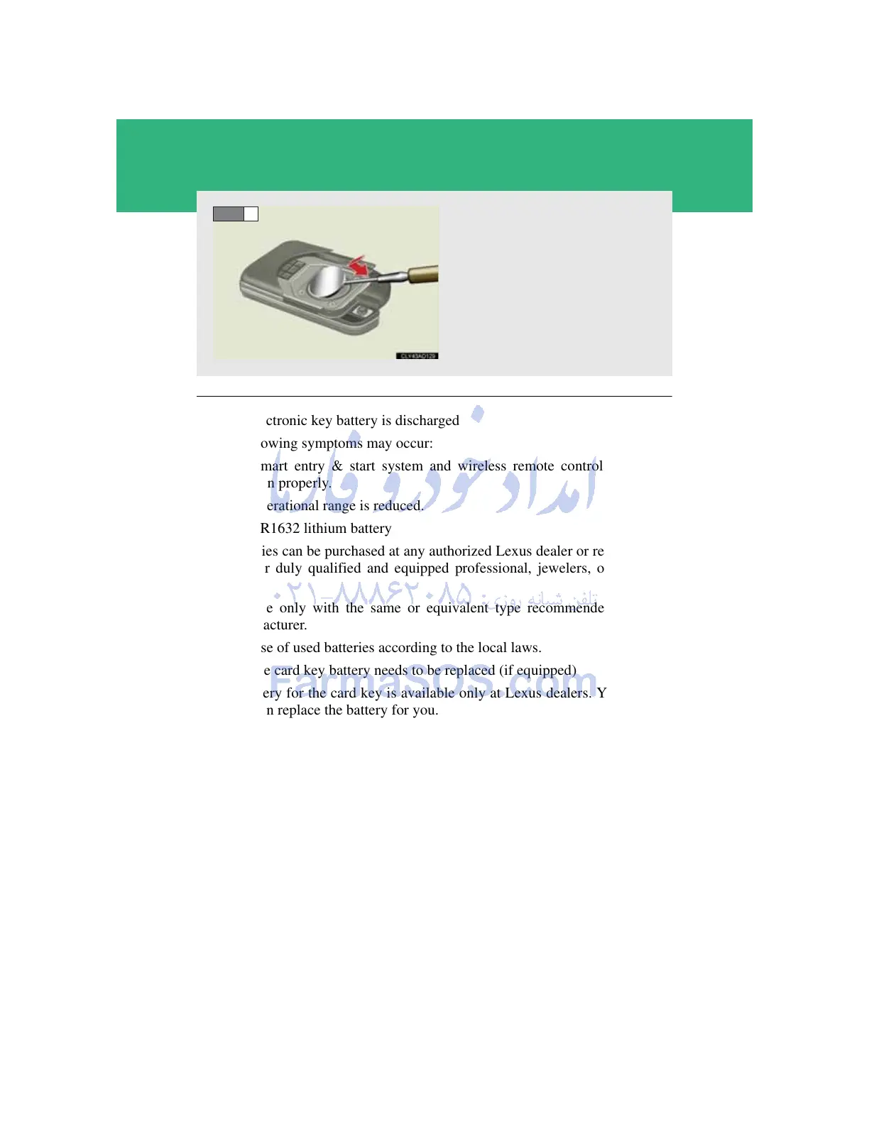 The battery for the card key is available only at Lexus dealers. Your Lexus