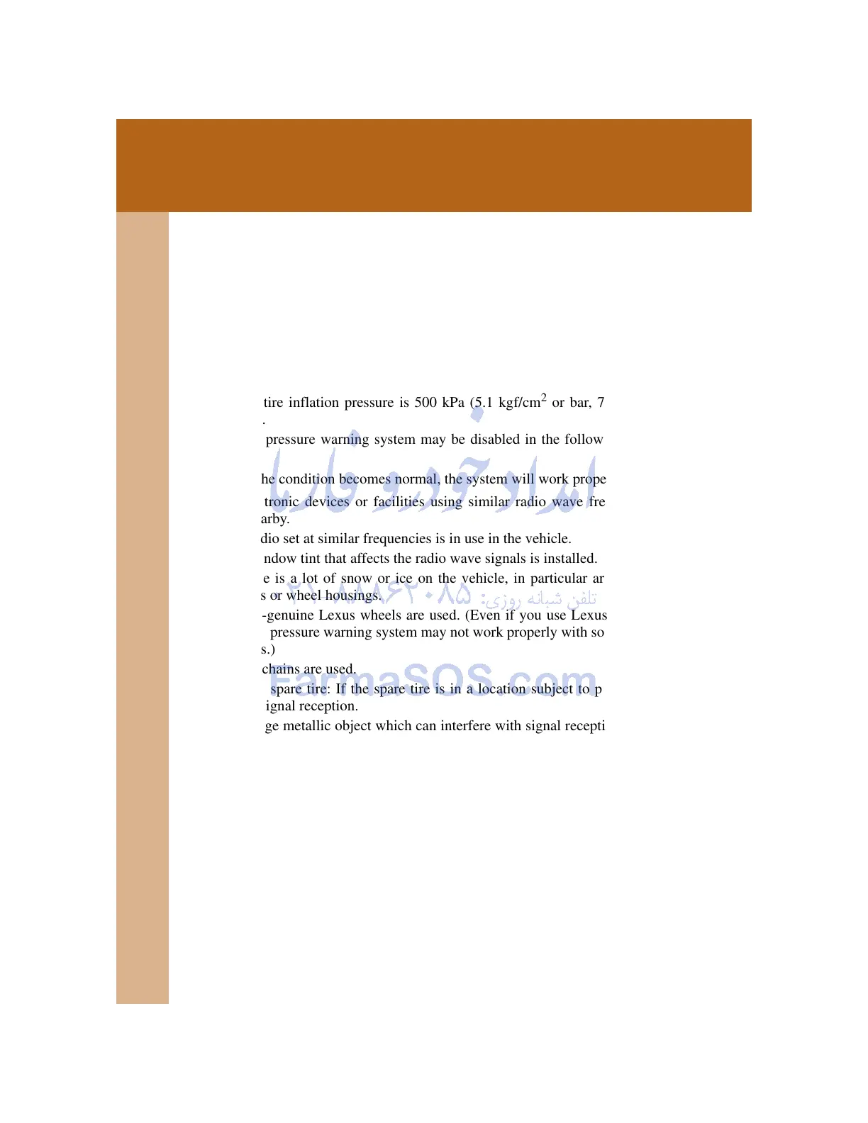 The tire pressure warning system will be disabled in the following condi-