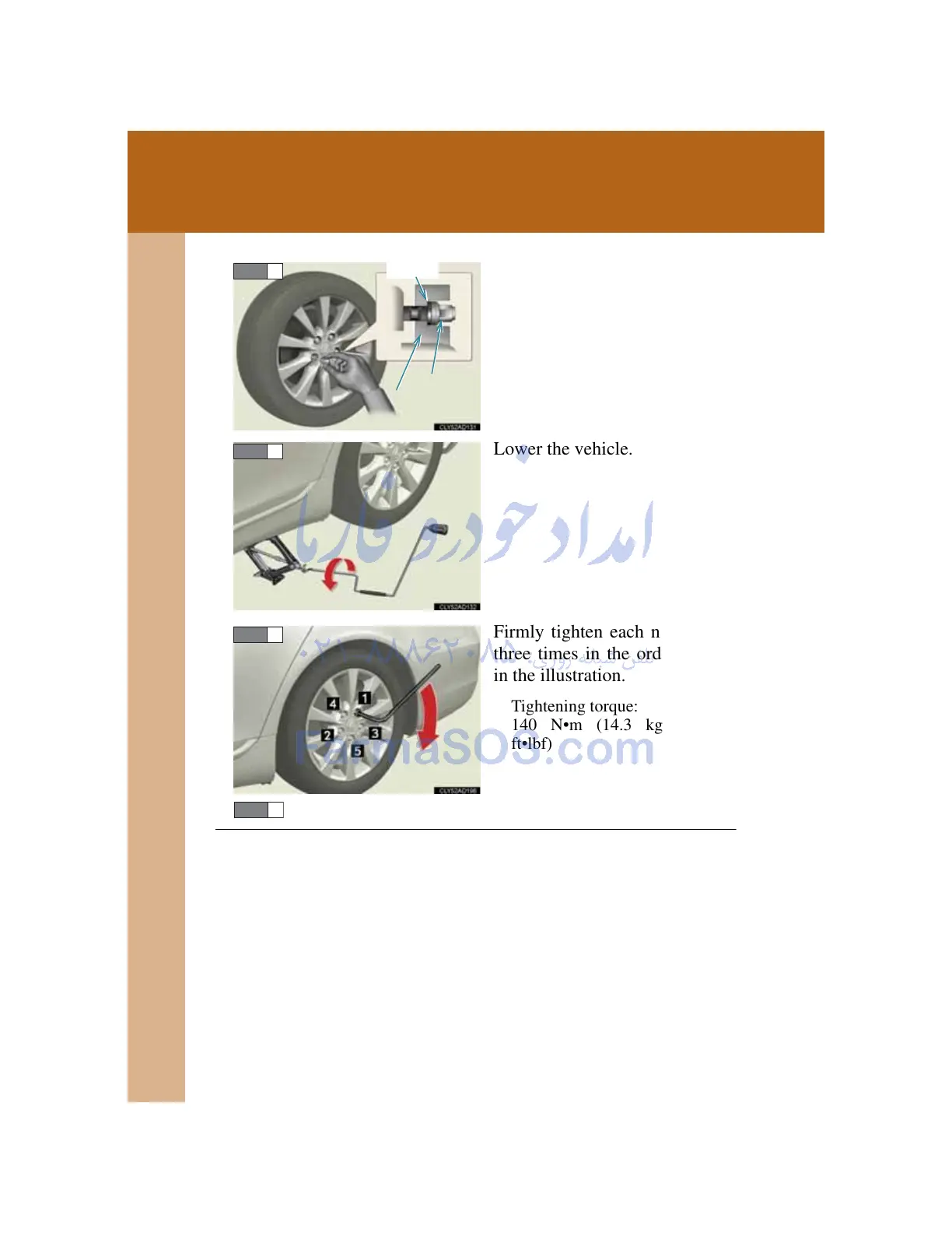 Install the spare tire and loosely