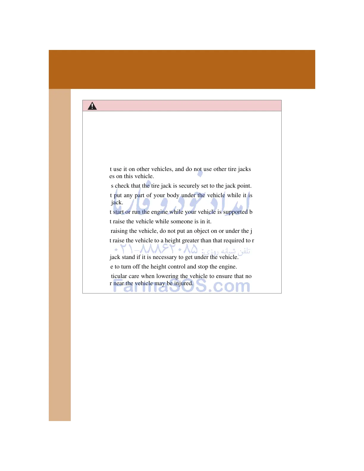 Do not use it on other vehicles, and do not use other tire jacks for replac-