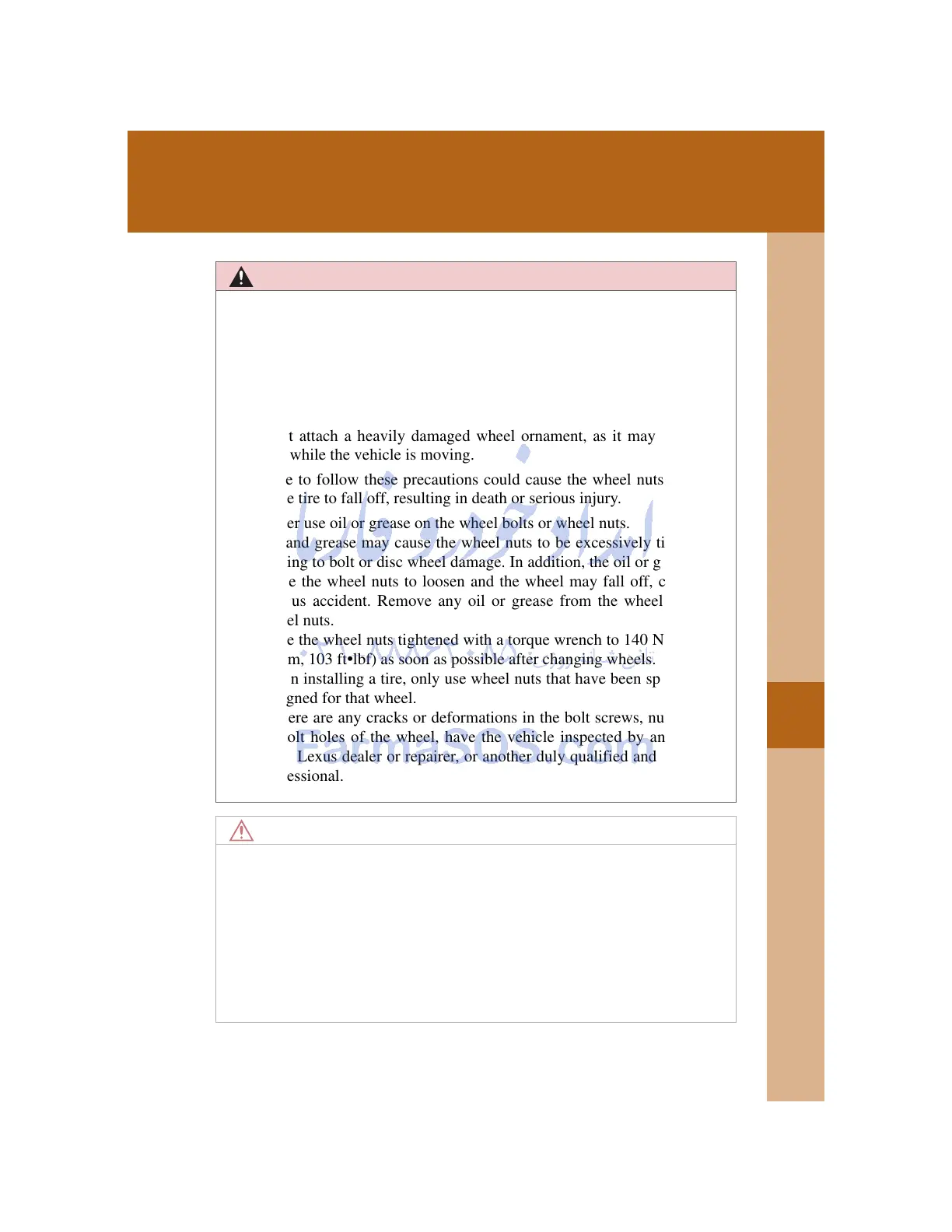 or bolt holes of the wheel, have the vehicle inspected by any autho-