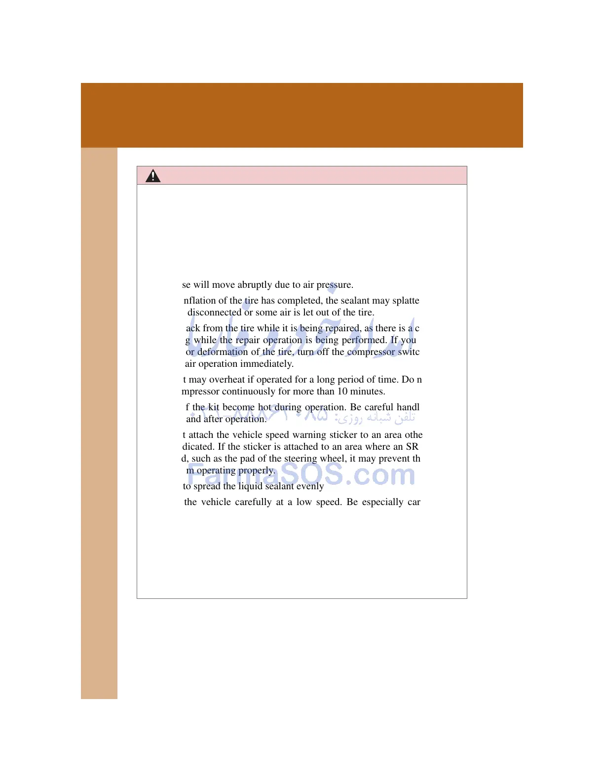 After inflation of the tire has completed, the sealant may splatter when the