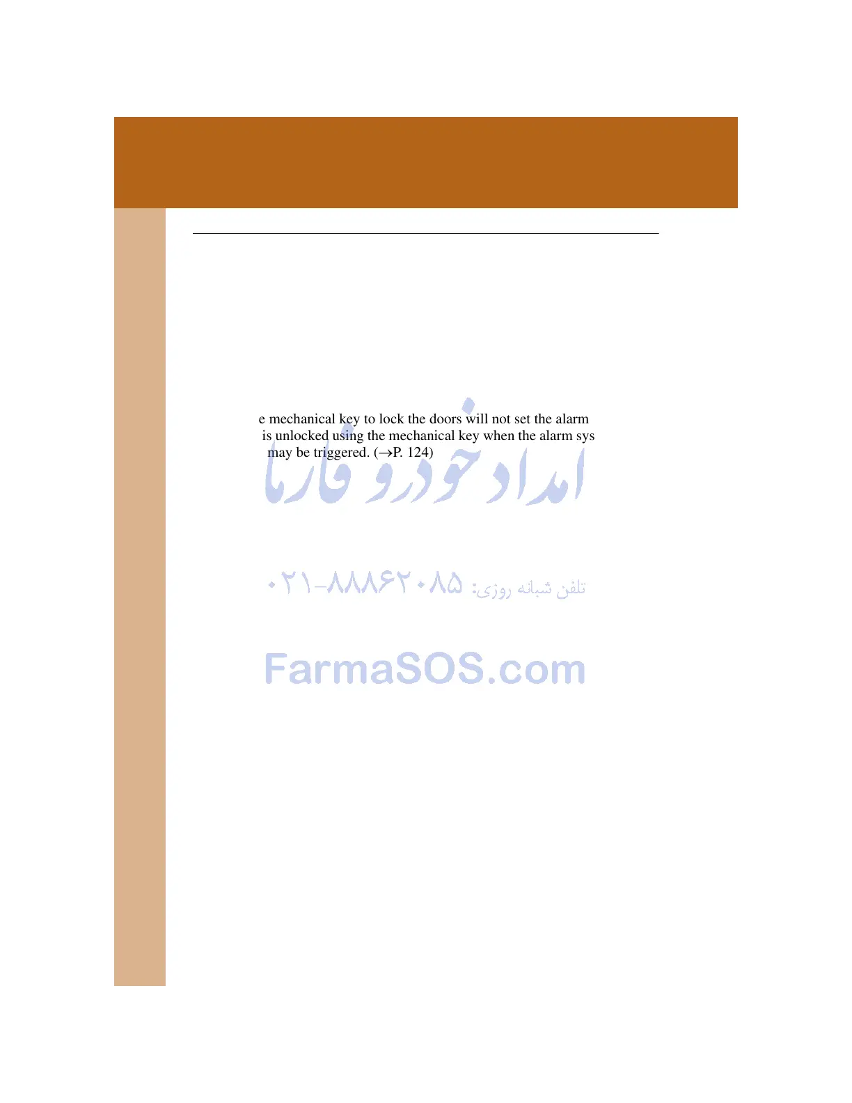 Using the mechanical key to lock the doors will not set the alarm system.