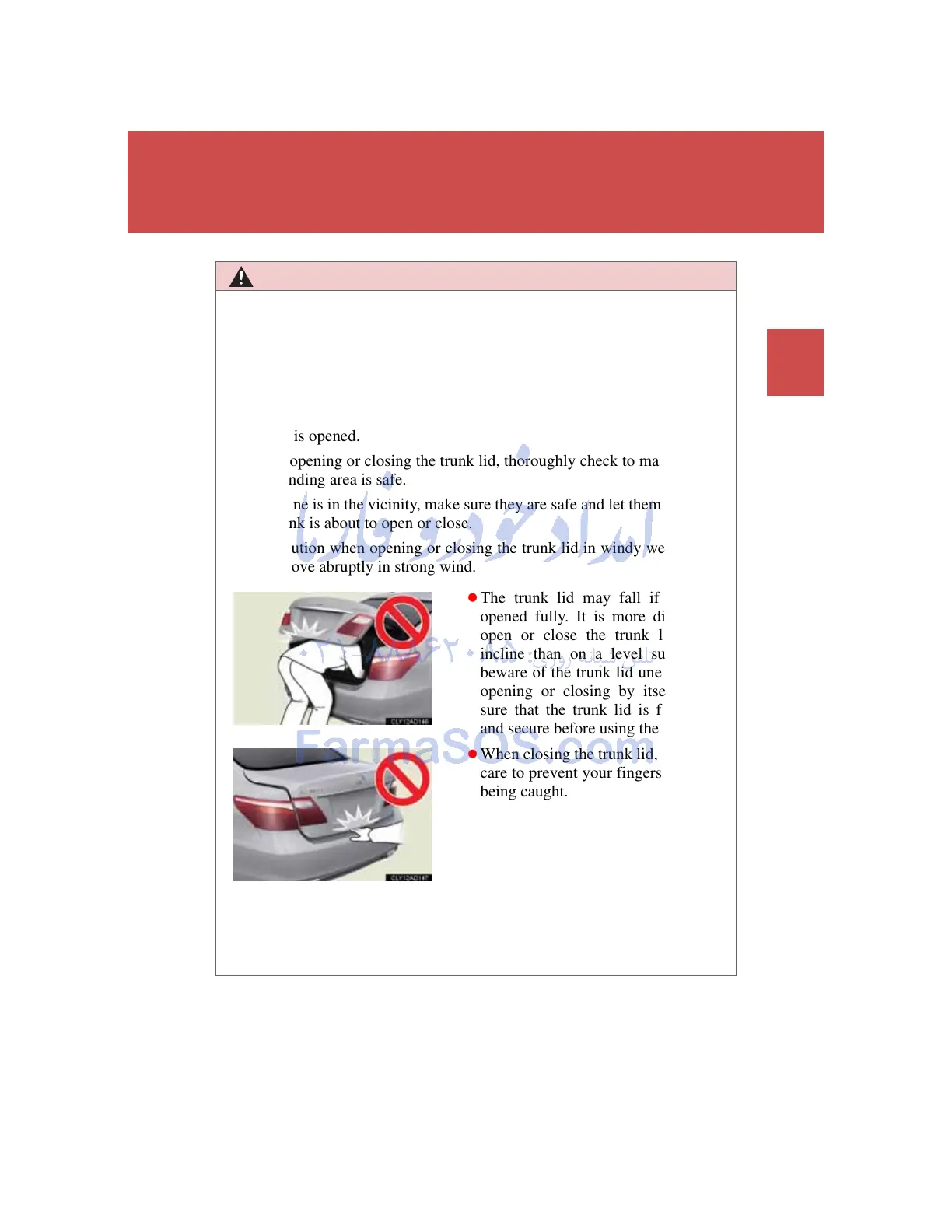 opening it. Failure to do so may cause the trunk lid to fall closed again