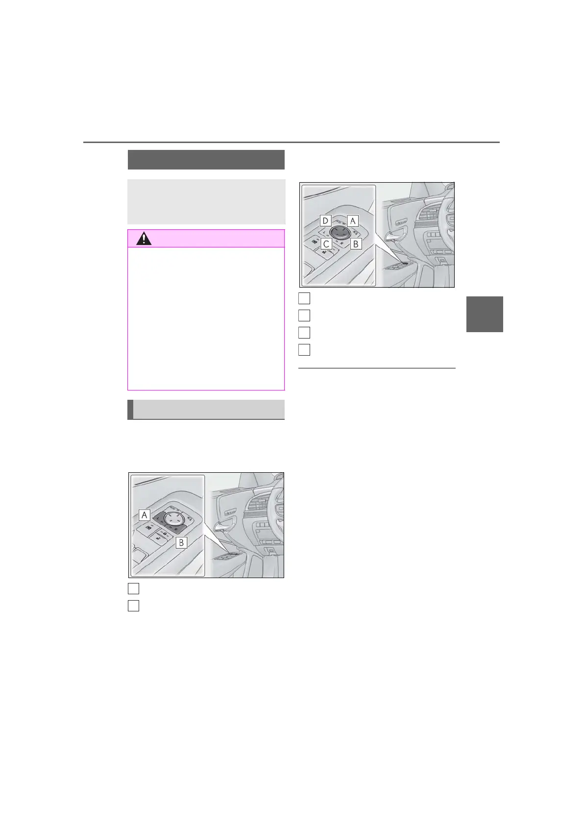 ● Do not adjust the mirrors while driving.