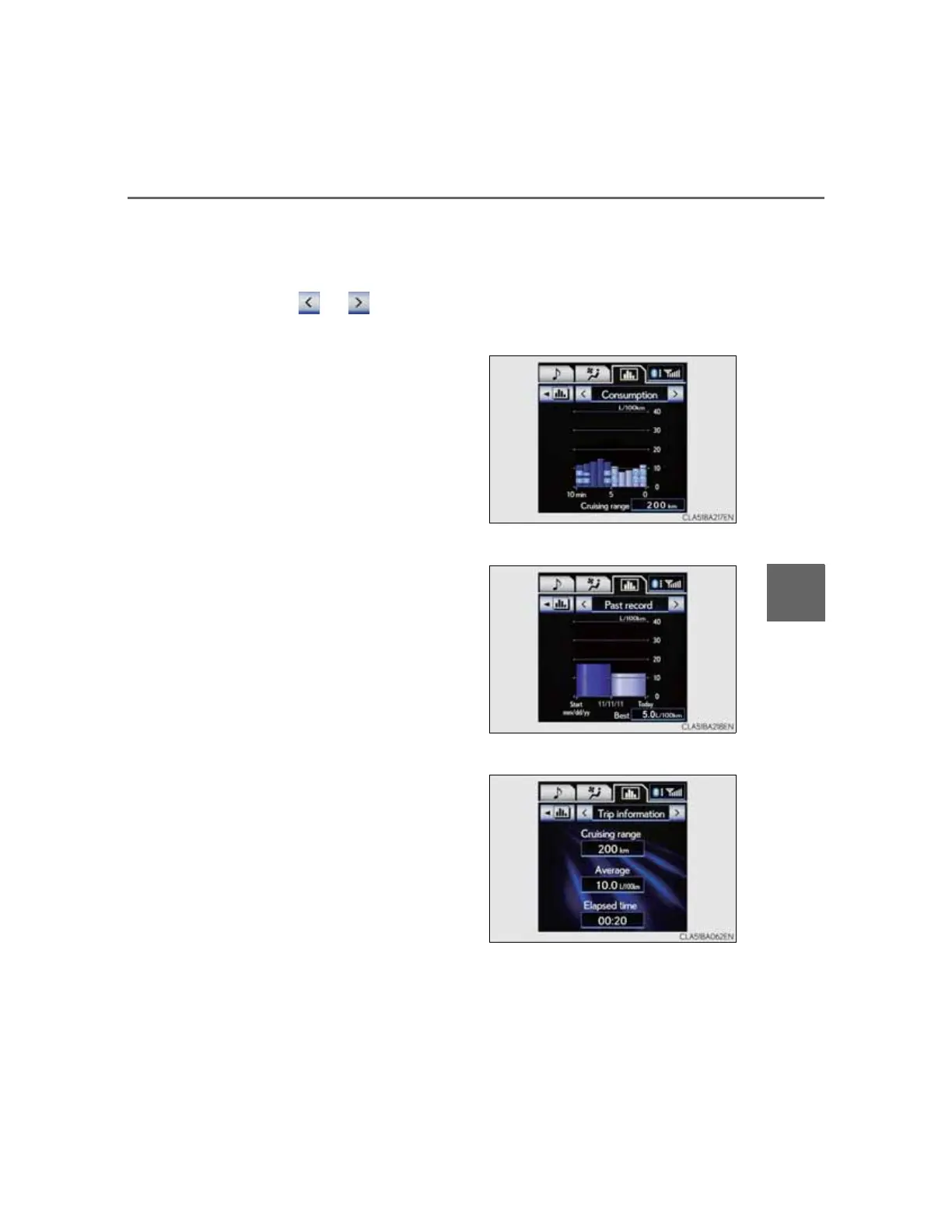 Displays the average fuel con-