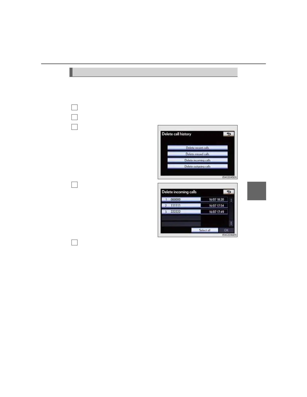 Select “Delete call history” on the “Phonebook settings” screen.