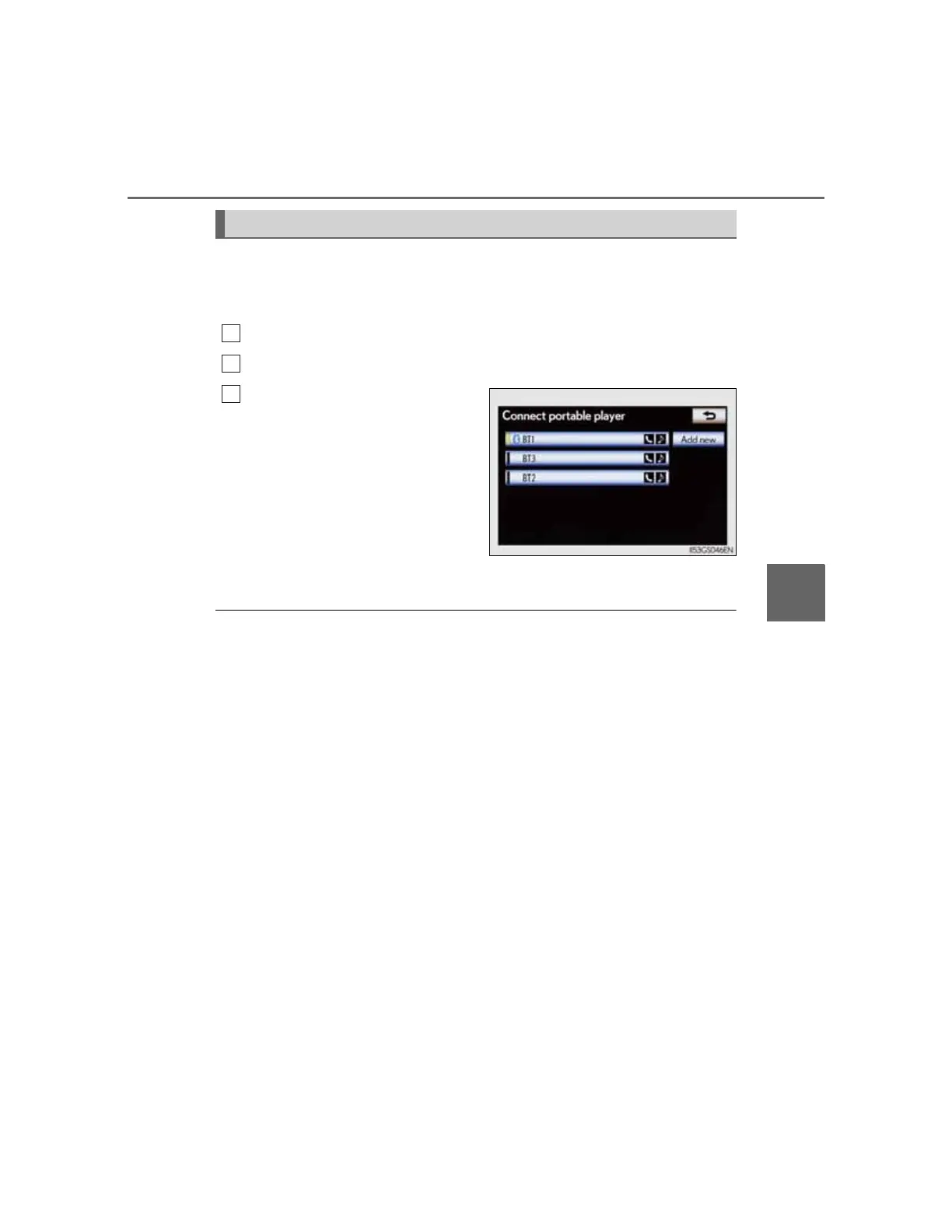 Select “Connect portable player” on the “Bluetooth*” screen.
