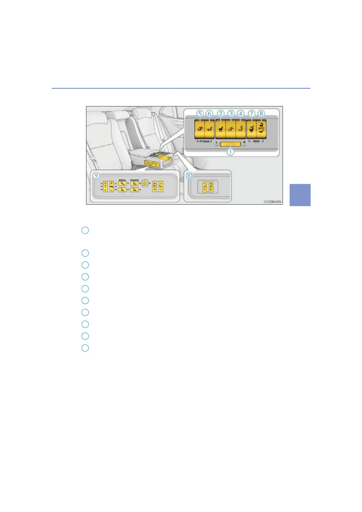 Front passenger’s seat control switch (P. 159)